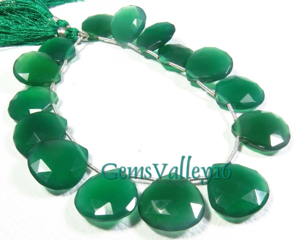 Material: Gemstone Style: Faceted Wholesale: Yes Hole Size: 0.45 - 0.50 (Approx.) Stone Type: Onyx Type: Beads Number of Pieces: 15 Length: 8 Inch Strand Color: Green Vintage: No Shape: Heart Handmade: Yes Country/Region of Manufacture: India Coating/Finish: Faceted Item Code: GV-1949 Size: 17 mm (Approx.) Bead Size: 17 mm (approx.) Drill Style: side drilled Brand: Unbranded