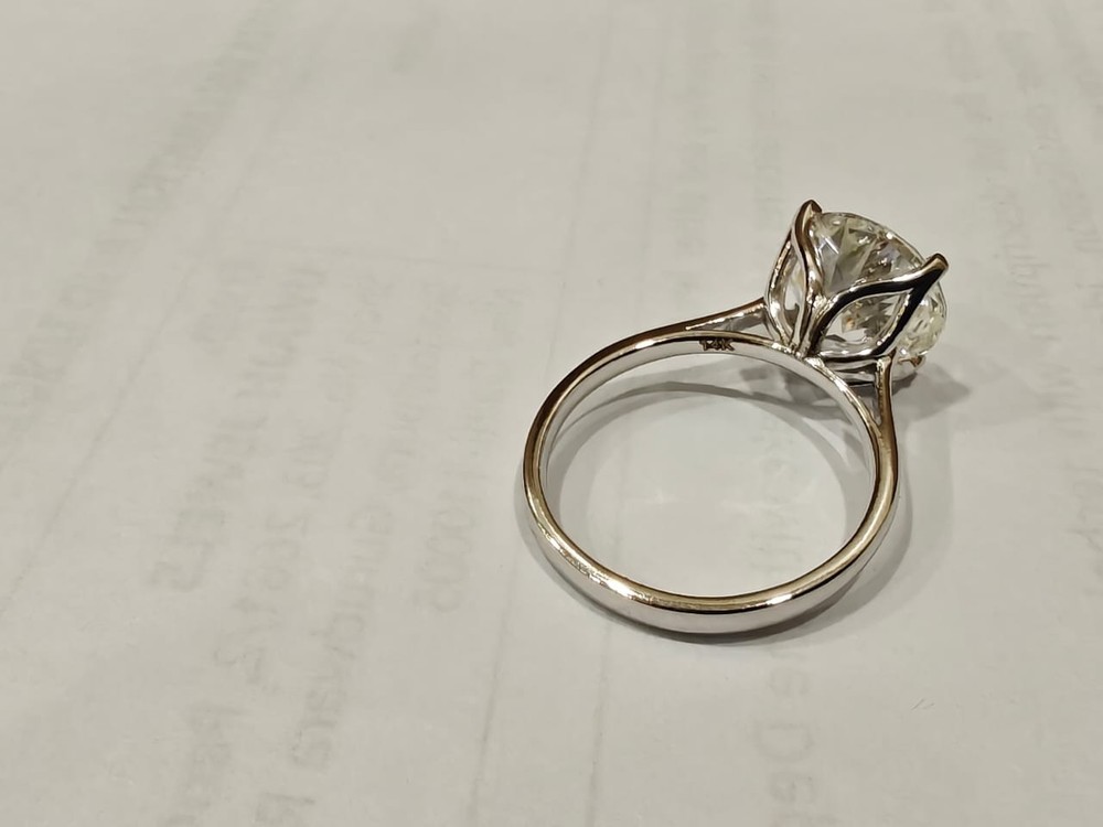 This Christmas Sale 4CT Round Cut Lab Grown Diamond Solitaire Ring in 14k White Gold is a stunning piece of fine jewelry, perfect for a variety of occasions such as engagements, weddings, anniversaries, and birthdays. The ring features a single round white diamond with excellent cut grade and VS clarity, set in a prong setting on a nickel-free white gold band. It is handmade with a 14k metal purity, and is customizable with a personalized touch. The ring is IGI certified and comes with a seller warranty, making it a secure and high-quality choice for your special someone.
