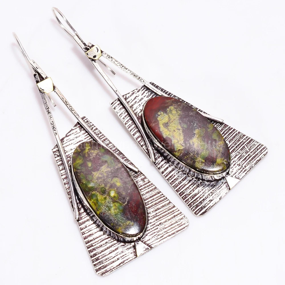 Welcome to Gemstonejewelleryhub Birthday Gift For Her Dragon Jasper Gemstone Drop/Dangle Earrings 925 Silver Handmade Earrings, Sterling Silver Earrings, Dragon Jasper Earrings, Handcrafted Earrings These beautiful earrings are a perfect addition to any jewelry collection. The oval-shaped dragon jasper gemstone is set in a silver channel-set, with a drop/dangle style that is sure to catch the eye. The earrings are handcrafted and engraved, making them a unique and special piece. As seen in the picture, the earrings are eye-clean and feature a multi-color dragon jasper gemstone, with no secondary stones. The earrings are 3.1 inches in length and are perfect for any occasion, whether it be an engagement, wedding, anniversary, or birthday. These earrings are nickel-free and come with a seller warranty and are signed. Add a touch of bohemian, ethnic, and healing themes to your outfit with these beautiful earrings. SKU : AAE-1508 Gemstone : Dragon Jasper Stone Shape : Oval Metal Purity : 925 Sterling Silver Length : 3.1 Inches Width : Inches ___________________________________________________________________ Shipping Handling - Charge - Free ( Condition apply ) Handling Time - One business day . Delivery Time - 3 to 23 Days ( Various on destination ) Postage service - (A.) India Post - Below $100 order which takes 11 to 23 days . (B.) USPS, Fedex, DHL , Aramax- Order above $100 which takes 3 to 7 days . _________________________________________________________________ Returns - 1. We provide a 100% Money Back Guarantee, excluding shipping costs, within 30 days from the date of item receipt. 2. The item must not be altered or damaged in any way shape or form. 3. Upon receiving these items your payment will be refunded. 4. Kindly reach out to us via email to obtain return instructions prior to initiating the return of merchandise. 5. Please allow up to 1 business day for all returns to receivecredit. 6. Sizing does not affect the return policy. _________________________________________________________________ Payment - We accept PayPal for Payment , should made within three days once buying or winning done , in case of late information expected . _________________________________________________________________ FAQ's - Q.(A) ARE THE ITEMS YOU ARE SELLING BRAND NEW? We exclusively offer brand-new products, refraining from the sale of pre-owned jewelry. Our entire jewelry collection is composed of 100% natural, conflict-free pieces. We do not engage in the trade of imitation or lab-grown gemstones and diamonds. Q.(B) WHAT ARE YOUR BUSINESS HOURS? Our business hours are Monday to Friday, 10:00AM to 6:00PM, excluding holidays. ________________________________________________________________ Gemstonejewelleryhub is dedicated to providing customers with exceptional handmade jewelry crafted to the highest standards of quality. We operate as both connoisseurs and manufacturers of artisanal jewelry, possessing a profound expertise in the art of elevating gemstones to perfectly align with any aesthetic preference. We are pleased to offer you the opportunity to create your own jewelry collection, adorned with authentic and exquisite natural gemstones. Our team of highly skilled artisans painstakingly crafts each individual jewelry piece, ensuring the creation of products with a unique identity that feature genuine gemstones. The jewelry articles presented on our website accurately depict the precise pieces that you will receive.
