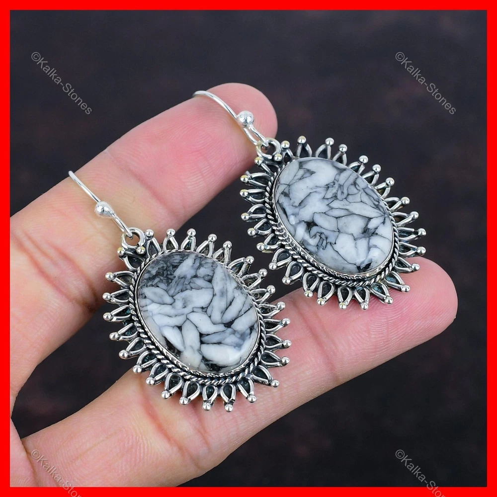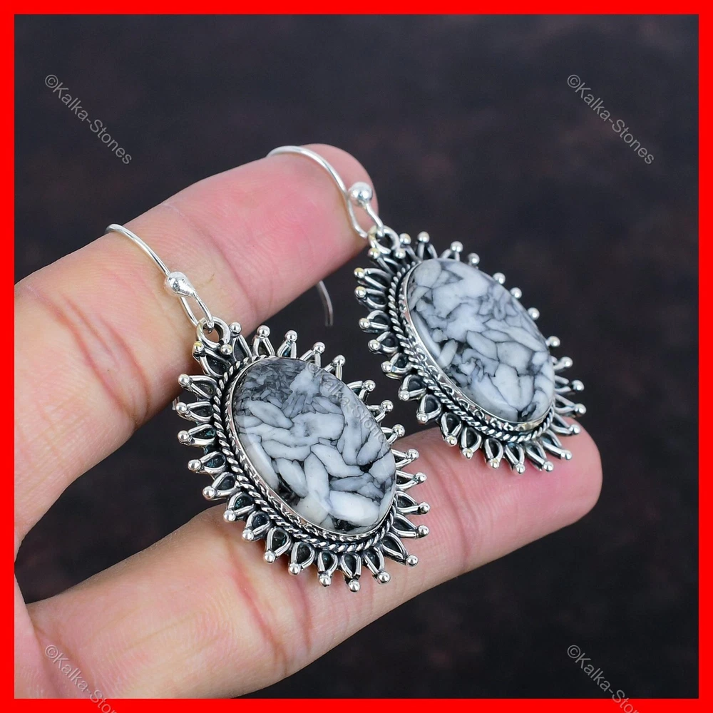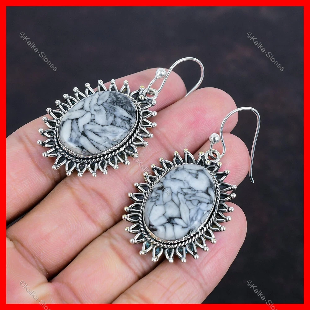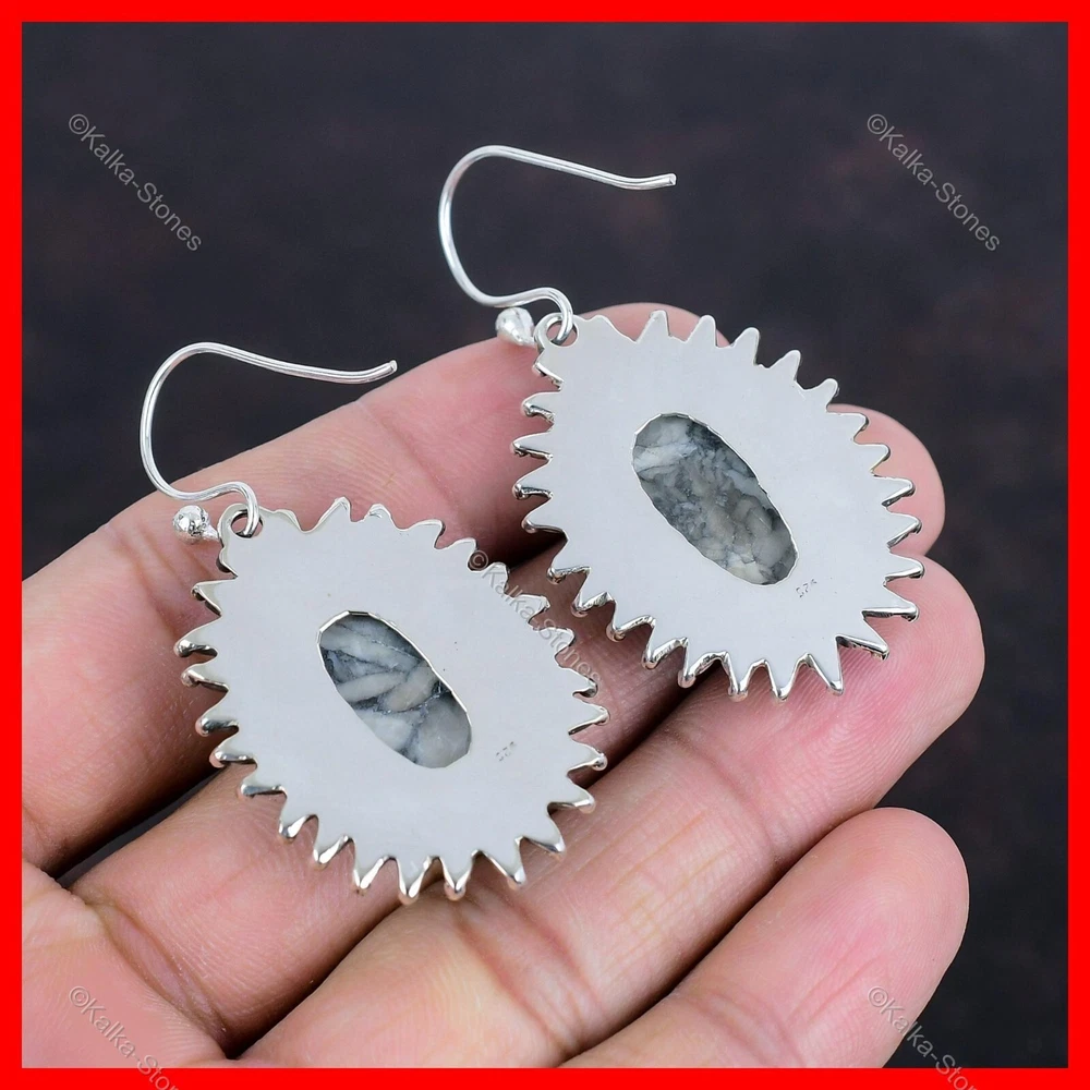 Note : Due to the natural formation of this gemstone. Slight variation in design and color are to be expected. Welcome to Kalka Stones Christmas Sale 925 Silver Pinolith Jasper Stone Elegant Drop Dangle New Earrings Handmade Earrings, Sterling Silver Earrings, Pinolith Jasper Earrings, Handcrafted Earrings SKU : KE-1459 Gemstone : Pinolith Jasper Stone Shape : Oval Metal Purity : 925 Sterling Silver Length : 56 $Earrings Unit$ Width : 30 $Earrings Unit$ Silver Jewelry is a popular choice for many people due to its unique properties and numerous benefits. Here are some of the key properties and benefits of wearing silver jewelry: Properties: Durability: Silver is a durable metal that can withstand regular wear and tear. Malleability: Silver is highly malleable, which means it can be easily shaped and molded into various designs. Conductivity: Silver is an excellent conductor of heat and electricity. Anti-bacterial: Silver has natural anti-bacterial properties, which can help prevent the growth of harmful bacteria. Benefits: Aesthetic appeal: Silver jewelry is known for its beauty and versatility, and can be worn with a variety of outfits and styles. Hypoallergenic: Silver is generally hypoallergenic, which means it is unlikely to cause an allergic reaction in most people. Healing properties: Some people believe that wearing silver jewelry can help with various physical and emotional conditions, such as arthritis, anxiety, and depression. Spiritual significance: Silver has been used in various cultures for its spiritual and symbolic significance, and wearing silver jewelry can help to connect with these traditions. Investment value: Silver is a precious metal that retains its value over time, and investing in silver jewelry can be a smart financial decision. Overall, silver jewelry offers a unique combination of beauty, durability, and benefits, making it a popular choice for people around the world. For Mother's Day Gift For Father's Day Gift For Promise For Valentine' Day For Halloween Party For Christmas Day Gift For New Year Party For Mom For Her If you can't find the information you need or need some advice for your design? Feel free to contact us. We are fast to reply :) All our work is made by hand with Love and Care in our workshop Thank you so much for visiting and hope you enjoy shopping with us Kalka Stones is dedicated to providing customers with high-quality sterling silver jewelry. As a manufacturer of handmade jewelry, we offer an extensive range of silver gemstone jewelry that demonstrates our exceptional craftsmanship. We are skilled in adorning gemstones to complement any style, and we give you the freedom to design your own jewelry collection with dazzling, natural, and genuine gemstones. Our talented craftsmen carefully handcraft each jewelry piece, ensuring that it is unique and made with authentic gemstones.
