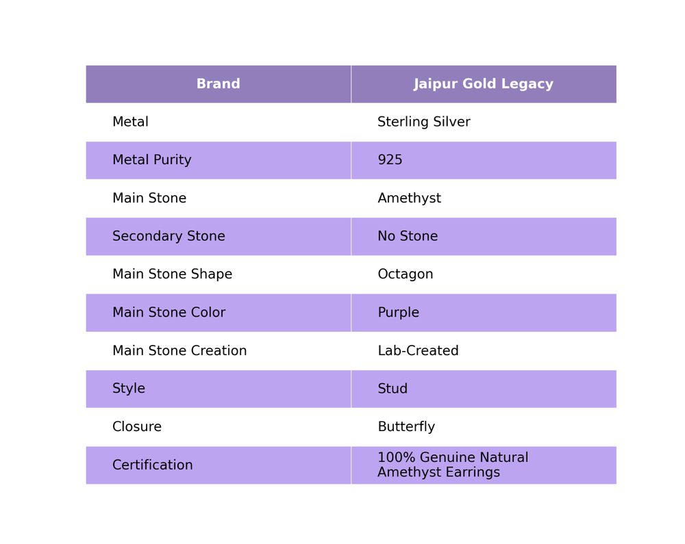 Make yourself trendy and stylish with this 925 Sterling Silver Earrings glittering with Amethyst that will add majestic charm and elegance to your look. Exquisitely designed, this Earrings will provide you a classy look. ------------------------------------------ Welcome to Our Shop Jaipur Gold Legacy ------------------------------------------ Lab-Created Amethyst Gemstone 925 Sterling Silver Stud Earrings For Women Description :- SKU:- VJ-VRG-0042 Metal:- Sterling Silver Metal Purity:- 925 Gemstone:- Amethyst Gemstone Color:- Purple Gemstone Shape :- Octagon Gemstone Creation :- Lab-Created Stone Setting :- Prong ♥ HARMLESS ♥ Our sterling silver rings are crafted to be harmless, nickel-free, lead-free, and hypoallergenic, brought to you by Jaipur Gold Legacy. ♥ EXCELLENT GIFT ♥ These handmade, beautifully textured/hammered wide statement spinner rings make an excellent gift for any occasion or season. Perfect for birthdays, weddings, anniversaries, or engagements, they are sure to delight. Your mom will especially love this ring on Mother’s Day. ♥ STERLING SILVER ♥ These meditation rings are made of solid 925 sterling silver, stamped with the 925 mark. This durable composition ensures they are suitable for everyday wear. ♥ MATCHING ANY OUTFIT ♥ These rings are versatile enough to complement any outfit. They make the perfect gift for any occasion and are ideal stocking stuffers for the holidays. ♥ VERSATILE DESIGN ♥ The design of these rings ensures you stand out effortlessly, adding a touch of elegance to any ensemble. ♥ MESMERIZING DESIGN ♥ Sleek and modern yet classic and elegant, this design is carefully packed in a beautiful jewelry box. It’s an excellent gift to express your love for your mother, girlfriend, fiancée, wife, valentine, family, or friends. Ideal for Mother’s Day, weddings, anniversaries, engagements, or Valentine’s Day. Image Policy :- -All photos are taken in natural light. -The product shown in pictures is the actual product you will receive. Delivery Policy :- -Standard shipping usually takes 15-25 days, depending on your location. -Fast shipping is available for an additional charge. Product Policy :- -The product shown in pictures is the real product you will receive. -All products are handmade. Order Policy :- -We accept orders from all over the world. -Custom orders are welcome. -Bulk orders are also accepted. -If you have any questions regarding our products, feel free to contact us. -After receiving your product, please don't forget to leave a review. "Explore a realm of exquisite and enchanting handcrafted gemstone jewelry at our boutique." ♥♥♥♥♥♥♥♥♥♥♥♥♥♥♥♥♥♥♥♥♥♥♥♥♥♥♥♥♥♥♥♥♥♥♥♥♥♥♥♥♥♥♥♥♥♥♥♥♥♥♥♥♥♥♥♥♥♥♥♥♥♥♥♥♥♥♥♥♥♥ ♥♥♥Amethyst Pendants♥♥♥ https://www.ebay.com/str/jaipurgoldlegacy?ref=seller-platform-mcnav&search_query=+pendants ♥♥♥Amethyst Earrings♥♥♥ https://www.ebay.com/str/jaipurgoldlegacy?ref=seller-platform-mcnav&search_query=+earrings ♥♥♥Amethyst Rings♥♥♥ https://www.ebay.com/str/jaipurgoldlegacy?ref=seller-platform-mcnav&search_query=+rings ♥♥♥♥♥♥♥♥♥♥♥♥♥♥♥♥♥♥♥♥♥♥♥♥♥♥♥♥♥♥♥♥♥♥♥♥♥♥♥♥♥♥♥♥♥♥♥♥♥♥♥♥♥♥♥♥♥♥♥♥♥♥♥♥♥♥♥♥♥♥ Visit our shop for more amazing and beautiful products. https://www.ebay.com/str/jaipurgoldlegacy ♥ Thank you for visiting us ♥ Jaipur Gold Legacy
