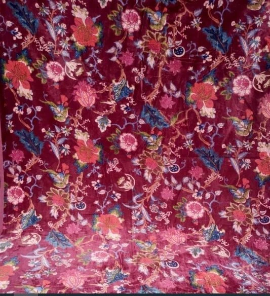 Welcome To Textileshub Item Description Item - Velvet Printed Fabric Width - 44" Inch ( Approx. ) Pattern - Floral Fabric - 100% Cotton Colors - Natural Pigment Dye Product Description The beautiful art of block Printing employs wooden or metal blocks to print designs and patterns on fabric, by hand. What makes block Printing unique is that the design has to be created by the artist before the Printing begins . It is carved onto the block by hand. The carved block is dipped into the required color . Fabric Width : 44 Inches (Approx) Fabric : Light Weight Velvet Thread count : 60 x 60 Quality : 60 x 60 ( best quality) Note: Color may be vary because of camera flash & different computer screen. Size may be vary to nature of item is handmade. Note - * International buyers are responsible for their countries duties and taxes . * We ship The Item Worldwide By FEDEX , UPS and by BOMBINO services. "THANK YOU VERY MUCH TO VISITING MY SHOP"