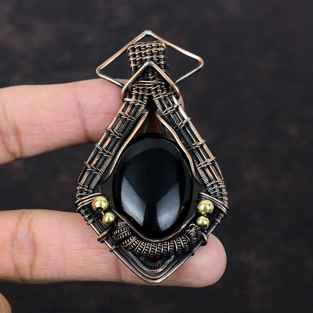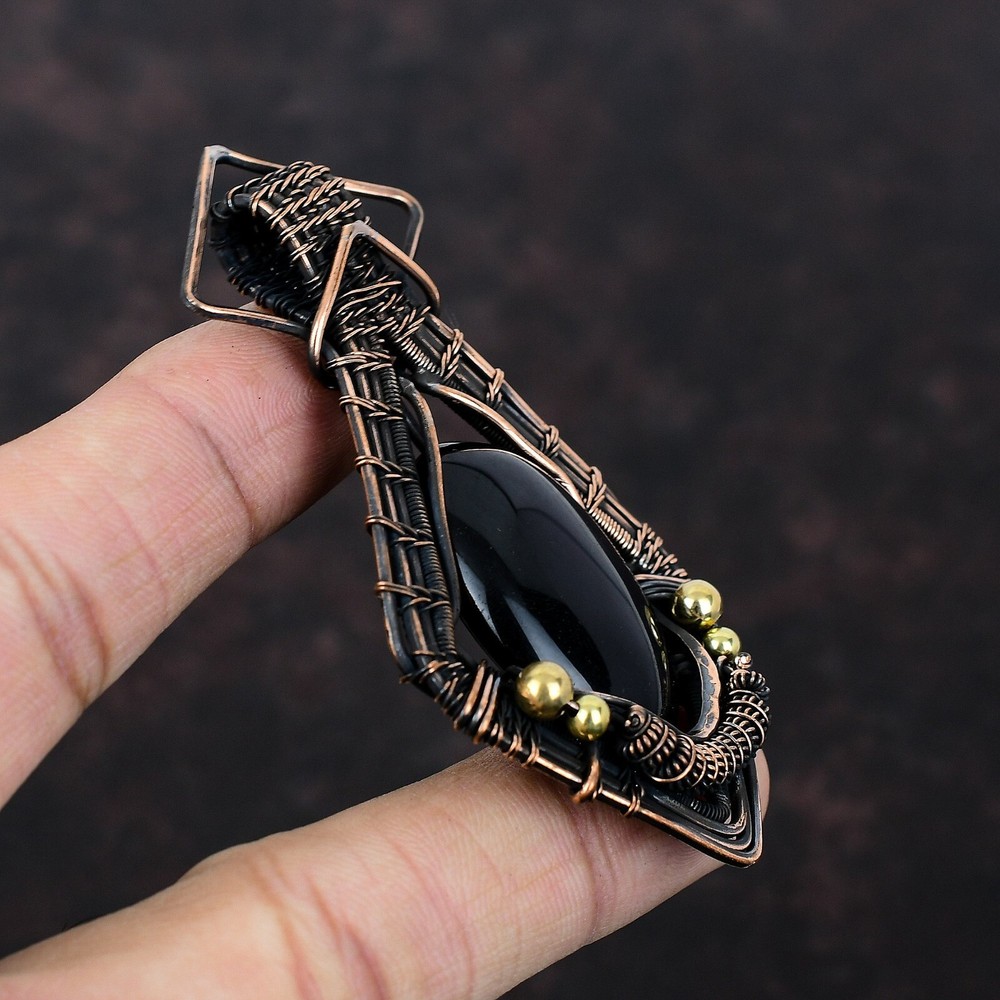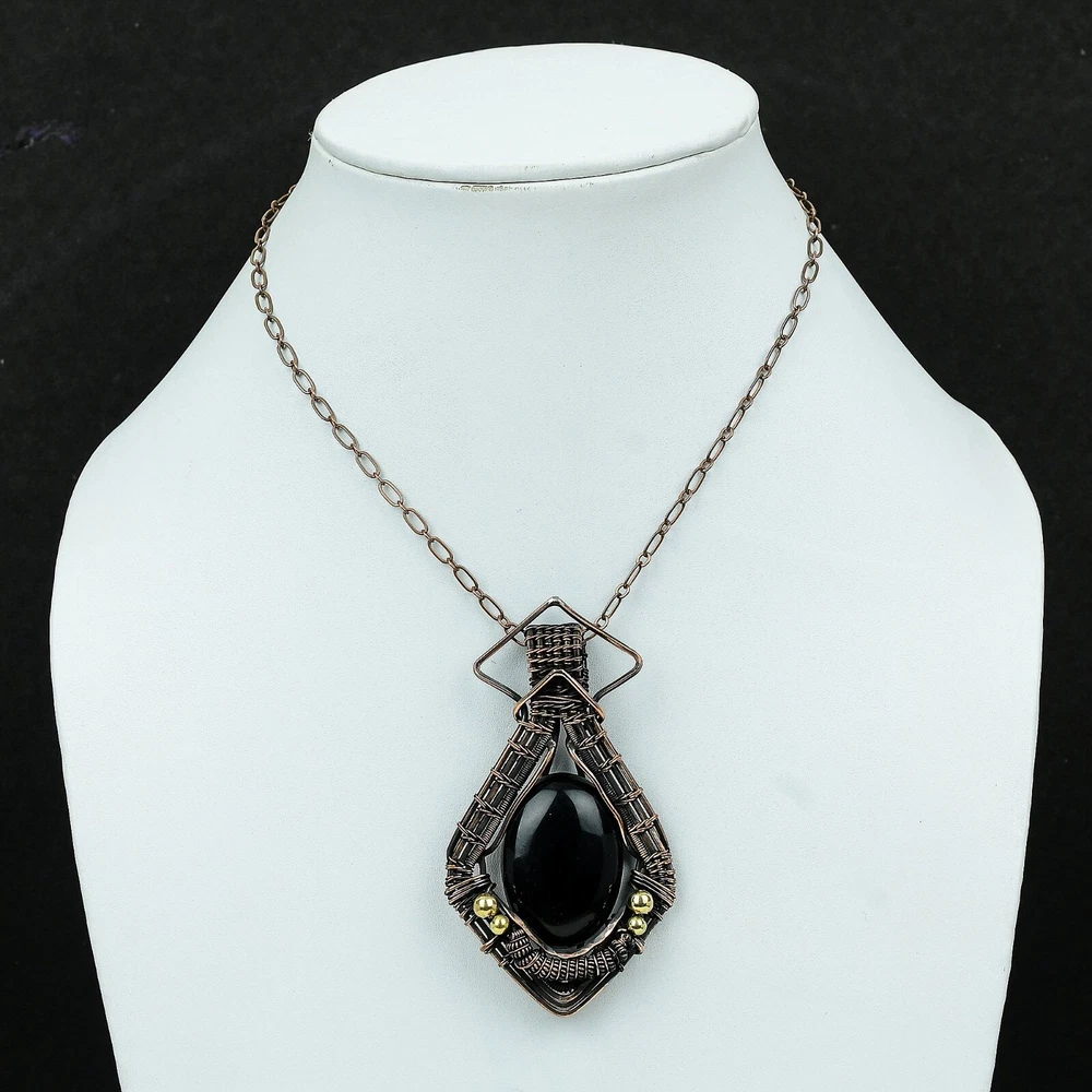 Christmas Sale Copper Black Onyx Gemstone Ethnic Wire Wrapped Pendant for Mothers