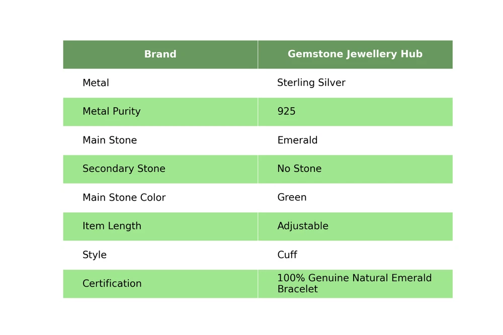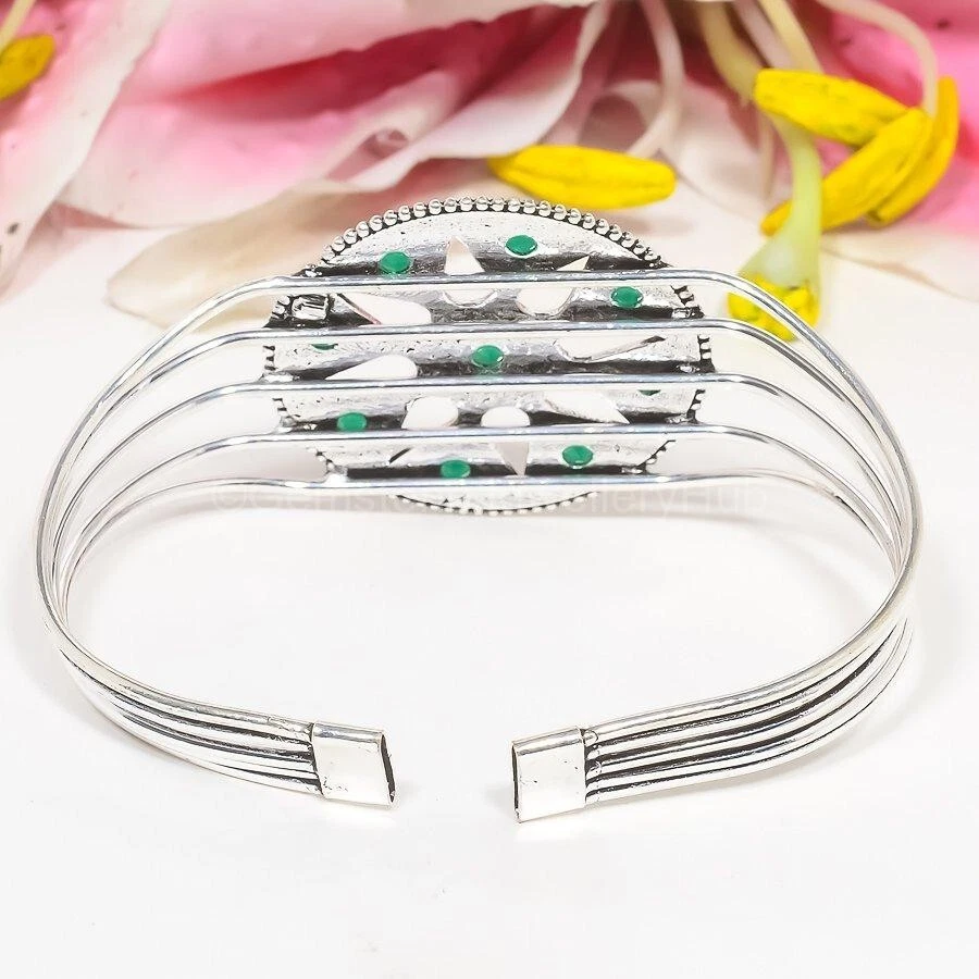Welcome to Gemstone Treasure Hub Emerald Gemstone Cuff Adjustable 925 Sterling Silver Indian Jewelry For Women Handmade Cuff, Sterling Silver Cuff, Emerald Cuff, Handcrafted Cuff SKU : MC-1888 Gemstone : Emerald Stone Shape : As Seen In Picture Metal Purity : 925 Sterling Silver Cuff Length : Adjustable _________________________________________________________________ Shipping Handling - Charge - Free ( Condition apply ) Handling Time - One business day . Delivery Time - 3 to 23 Days ( Various on destination ) Postage service - (A.) India Post - Below $100 order which takes 11 to 23 days . (B.) USPS, Fedex, DHL , Aramax- Order above $100 which takes 3 to 7 days . _________________________________________________________________ Returns - 1. We provide a 100% Money Back Guarantee, excluding shipping costs, within 30 days from the date of item receipt. 2. The item must not be altered or damaged in any way shape or form. 3. Upon receiving these items your payment will be refunded. 4. Kindly reach out to us via email to obtain return instructions prior to initiating the return of merchandise. 5. Please allow up to 1 business day for all returns to receivecredit. 6. Sizing does not affect the return policy. _________________________________________________________________ Payment - We accept PayPal for Payment , should made within three days once buying or winning done , in case of late information expected . _________________________________________________________________ FAQ's - Q.(A) ARE THE ITEMS YOU ARE SELLING BRAND NEW? We exclusively offer brand-new products, refraining from the sale of pre-owned jewelry. Our entire jewelry collection is composed of 100% natural, conflict-free pieces. We do not engage in the trade of imitation or lab-grown gemstones and diamonds. Q.(B) WHAT ARE YOUR BUSINESS HOURS? Our business hours are Monday to Friday, 10:00AM to 6:00PM, excluding holidays. ________________________________________________________________ Gemstone Treasure Hub is dedicated to providing customers with exceptional handmade jewelry crafted to the highest standards of quality. We operate as both connoisseurs and manufacturers of artisanal jewelry, possessing a profound expertise in the art of elevating gemstones to perfectly align with any aesthetic preference. We are pleased to offer you the opportunity to create your own jewelry collection, adorned with authentic and exquisite natural gemstones. Our team of highly skilled artisans painstakingly crafts each individual jewelry piece, ensuring the creation of products with a unique identity that feature genuine gemstones. The jewelry articles presented on our website accurately depict the precise pieces that you will receive.