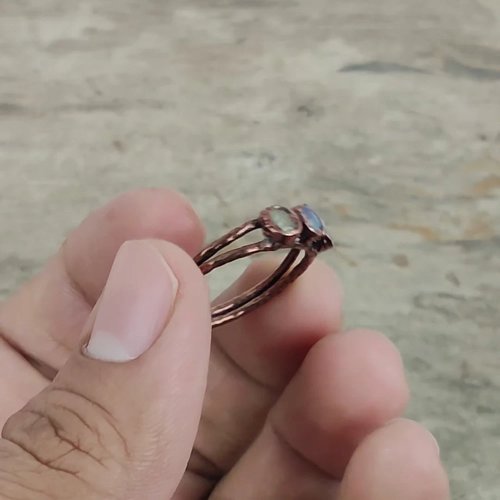 Christmas Sale Ethiopian Opal Gemstone Promise Electroformed Trendy Ring Copper