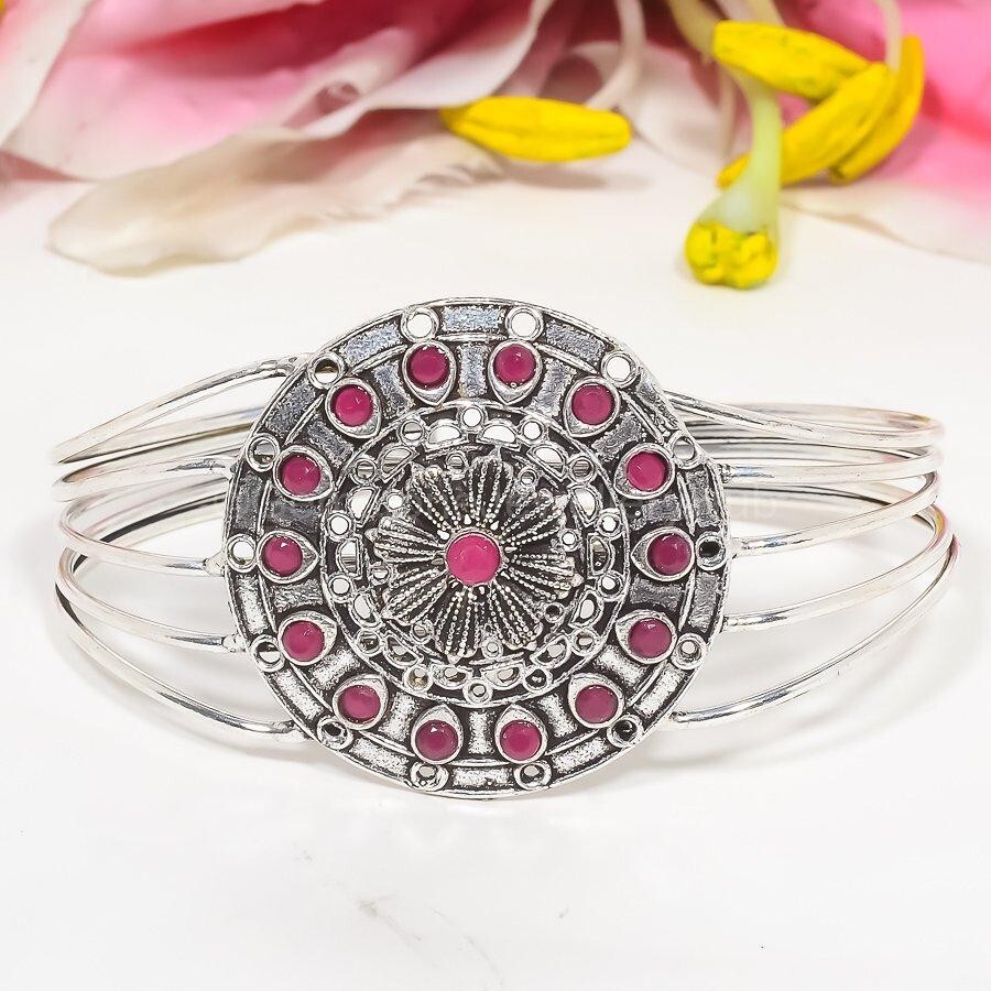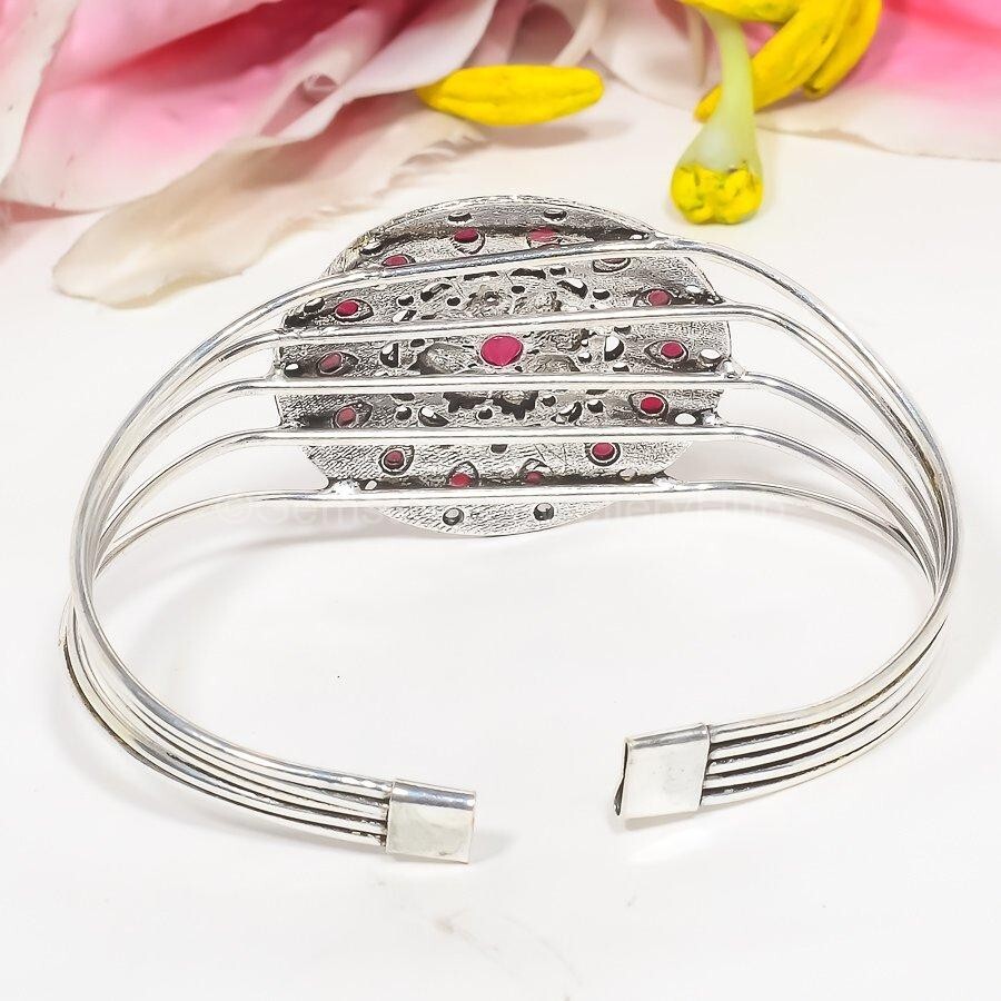 Seller Warranty: Yes Gemstone Clarity Grade: Eye Clean Main Stone Shape: As Seen In Picture Base Metal: Silver Item Length: 7.5 in Features: Adjustable, Engraved, Nickel-Free, Handcrafted Secondary Stone: No Stone Number of Gemstones: As Seen in Picture Antique: No Customized: No Metal Purity: 925 Chain Type: Not Applicable Theme: Beauty, Bohemian, Ethnic, Healing, Love, Luck, Special Occasion, Halo, Love & Hearts Charm Type: Traditional Main Stone Treatment: Not Enhanced Vintage: No Main Stone: Red Ruby Shape: As Seen As Picture Brand: Unbranded Style: Cuff Color: Silver Cut Grade: Excellent Country/Region of Manufacture: India Wholesale: Yes Sizable: Yes Type: Bracelet Era: Undated Signed: Yes Occasion: Anniversary, Birthday, Engagement, Wedding Material: Crystal, Gemstone, Stone, Metal Setting Style: Channel-Set Main Stone Color: Multicolor Metal: Silver