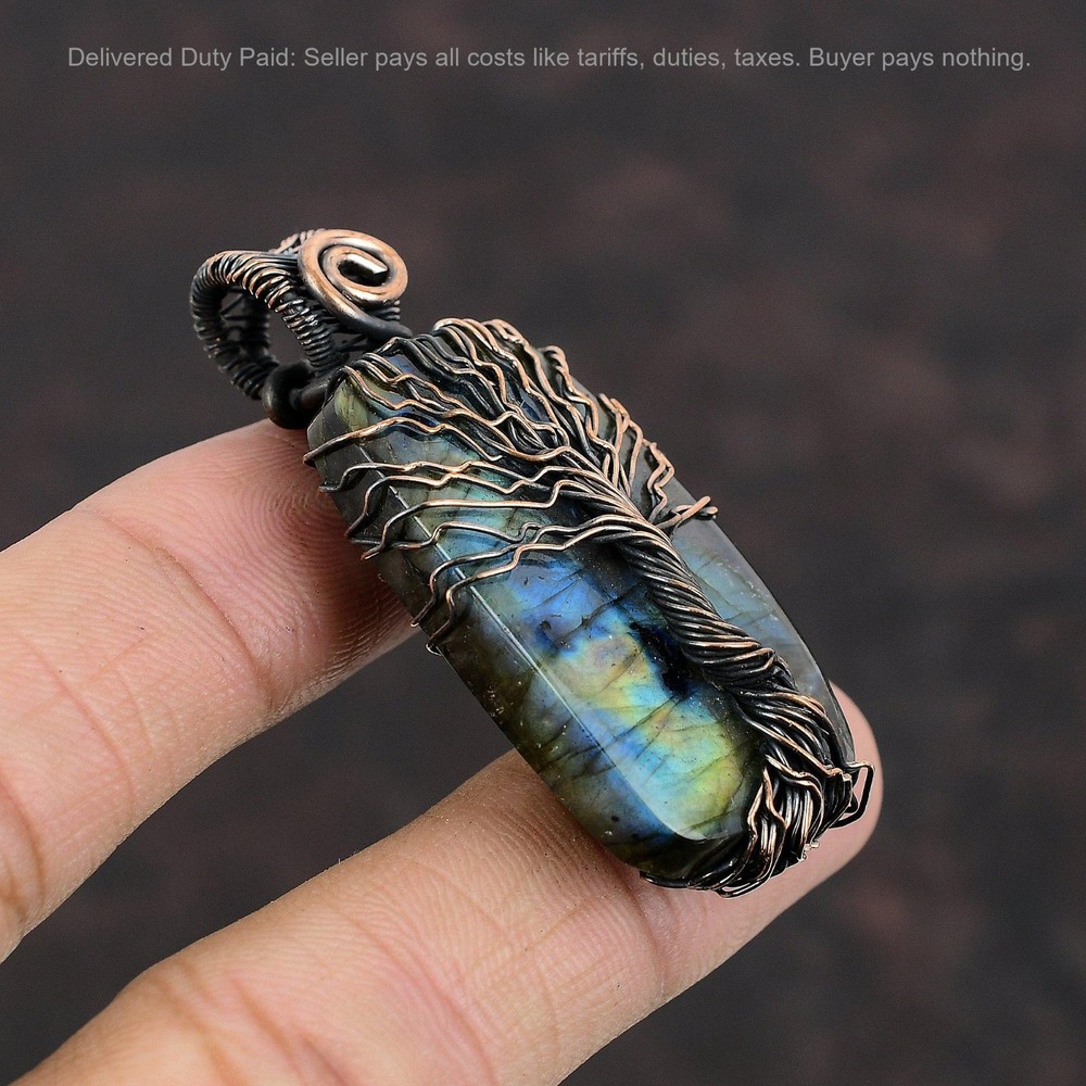 Note : Due to the natural formation of this gemstone. Slight variation in design and color are to be expected. Welcome to Silver Creation Christmas Sale Labradorite Stone Copper Wire Wrapped Tree Of Life Mother Pendant Handmade Pendant, Wire Wrapped Pendant, Wire Wrapped Jewelry, Copper Pendant, Copper Wire Pendant, Wrapped Jewelry, Wire Wrap Pendant, Wire Wrap Jewelry SKU : VFWP-321 Stone Shape : Radiant Metal Purity : Unknown Copper Length : 57 Millimeters Width : 27 Millimeters Copper has been used for jewelry making for thousands of years, dating back to ancient civilizations such as the Egyptians, Romans, and Aztecs. Copper was valued for its beauty, versatility, and durability, and was often used to make everything from jewelry and coins to cookware and tools. In addition to its historical significance, copper jewelry also offers several benefits. Copper is a natural conductor of heat and electricity, which makes it ideal for energy healing and therapeutic purposes. Wearing copper jewelry is believed to have various health benefits, such as improving circulation, reducing inflammation, and boosting the immune system. Some people also believe that copper jewelry has the ability to balance energy and improve mood. For Mother's Day Gift For Father's Day Gift For Promise For Valentine' Day For Halloween Party For Christmas Day Gift For New Year Party For Mom For Her If you can't find the information you need or need some advice for your design? Feel free to contact us. We are fast to reply :) All our work is made by hand with Love and Care in our workshop Thank you so much for visiting and hope you enjoy shopping with us Silvercreations is committed to delivering the best quality sterling silver jewelry to customers. As a handmade jewelry manufacturer, we offer an extensive selection of copper gemstone jewelry that showcases the brilliance of our craftsmanship. We are an experienced handmade jewelry supplier with expertise in embellishing gemstones to suit every style. We offer you the liberty to create your jewelry ensemble with sparkling, earthy, and pure gemstones. Our Talented artisans masterfully handcraft each piece of jewelry you see here. Our pieces are made with genuine gemstones.