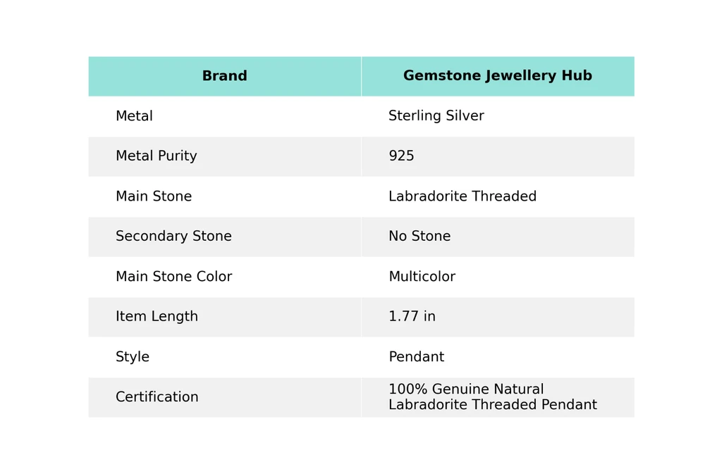 Welcome to Gemstone Treasure Hub Labradorite Threaded Gemstone Jewelry 925 Sterling Silver Pendant For Women Handmade Pendant, Sterling Silver Pendant, Labradorite Threaded Pendant, Handcrafted Pendant SKU : MP-821 Gemstone : Labradorite Threaded Stone Shape : As Seen In Picture Metal Purity : 925 Sterling Silver Length : 1.77 Inches Width : Inches ___________________________________________________________________ Shipping Handling - Charge - Free ( Condition apply ) Handling Time - One business day . Delivery Time - 3 to 23 Days ( Various on destination ) Postage service - (A.) India Post - Below $100 order which takes 11 to 23 days . (B.) USPS, Fedex, DHL , Aramax- Order above $100 which takes 3 to 7 days . _________________________________________________________________ Returns - 1. We provide a 100% Money Back Guarantee, excluding shipping costs, within 30 days from the date of item receipt. 2. The item must not be altered or damaged in any way shape or form. 3. Upon receiving these items your payment will be refunded. 4. Kindly reach out to us via email to obtain return instructions prior to initiating the return of merchandise. 5. Please allow up to 1 business day for all returns to receivecredit. 6. Sizing does not affect the return policy. _________________________________________________________________ Payment - We accept PayPal for Payment , should made within three days once buying or winning done , in case of late information expected . _________________________________________________________________ FAQ's - Q.(A) ARE THE ITEMS YOU ARE SELLING BRAND NEW? We exclusively offer brand-new products, refraining from the sale of pre-owned jewelry. Our entire jewelry collection is composed of 100% natural, conflict-free pieces. We do not engage in the trade of imitation or lab-grown gemstones and diamonds. Q.(B) WHAT ARE YOUR BUSINESS HOURS? Our business hours are Monday to Friday, 10:00AM to 6:00PM, excluding holidays. ________________________________________________________________ Gemstone Treasure Hub is dedicated to providing customers with exceptional handmade jewelry crafted to the highest standards of quality. We operate as both connoisseurs and manufacturers of artisanal jewelry, possessing a profound expertise in the art of elevating gemstones to perfectly align with any aesthetic preference. We are pleased to offer you the opportunity to create your own jewelry collection, adorned with authentic and exquisite natural gemstones. Our team of highly skilled artisans painstakingly crafts each individual jewelry piece, ensuring the creation of products with a unique identity that feature genuine gemstones. The jewelry articles presented on our website accurately depict the precise pieces that you will receive.