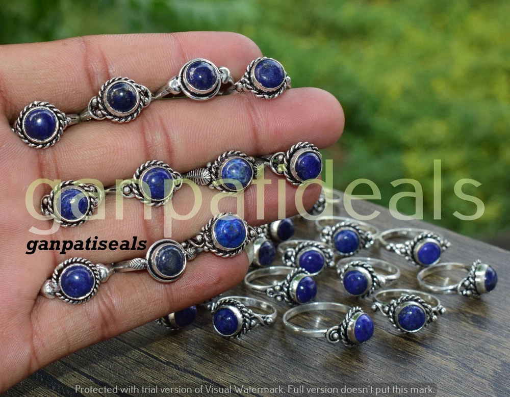 Seller Notes: “I am a wholesaler, I sell goods at wholesale rates, contact me through eBay” Vintage: No Shape: Mix Shape UPC: Dose Not Apply Occasion: Anniversary, Birthday, Christmas, Engagement, Mother's Day, Valentine's Day Cut Grade: Excellent Main Stone Color: Blue Setting Style: Cluster gtin13: Dose Not Apply Metal Purity: 925 Country/Region of Manufacture: India Number of Gemstones: 1 Theme: Art, Beauty Secondary Stone: Unknown Gemstone Clarity Grade: Eye Clean Country of Origin: India Material: Stone Ring Size: Mix Main Stone Creation: Lab-Created/Cultured Antique: Yes Main Stone Shape: Mix Shape Main Stone: Lapis Lazuli Signed: Yes Type: Fashion Ring Personalize: Yes Style: Charm Base Metal: Brass Handmade: Yes Metal: Silver Plated Wholesale: Yes Main Stone Treatment: Not Enhanced Color: Same As Picture Brand: Handmade Band Width: Mix Customized: No