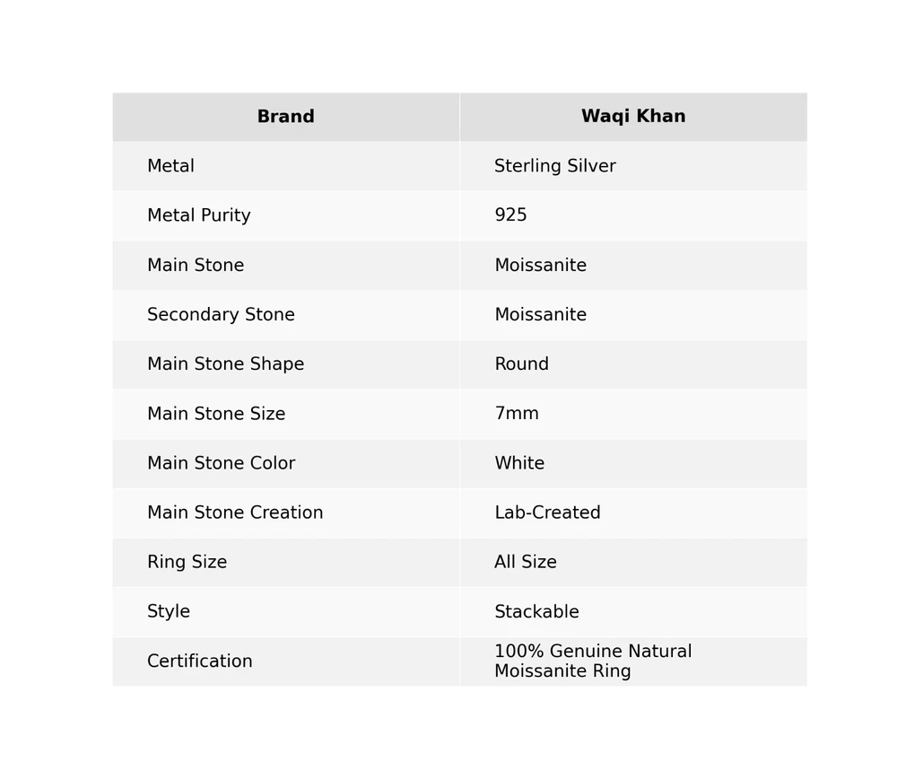 Dive into the magical temptation of this stunning Ring in attractive shape and design made of Sterling Silver studded with Moissanite. An essential ornament to add in your jewellery collection! Welcome to Waqikhan ! Gift For Her 925 Silver Lab-Created Moissanite Stackable Ring Size All Size NOTE :- "ALL RING SIZES ARE AVAILABLE WITH US FROM SIZE 4 TO 14. PLEASE MESSAGE US WITH DESIRED SIZE OF YOURS" Description :- This stunning silver ring is the perfect choice for any special occasion. The main stone is a beautiful round lab-created moissanite, with secondary stones made of moissanite as well. The ring features an excellent cut grade and eye-clean gemstone clarity, making it a true standout piece. The ring is nickel-free and handcrafted, with a prong setting style. It is available in all sizes and can be personalized to suit your needs. The band width is 2mm, and the ring is made of high-quality materials including gemstone, metal, stone, and crystal. This ring is sure to show your love and affection for your significant other, making it the perfect gift for an anniversary, birthday, engagement, or wedding. SKU:- M1990 Metal:- Sterling Silver Metal Purity:- 925 Gemstone:- Moissanite, Moissanite Gemstone Color:- White Gemstone Shape :- Round Gemstone Creation :- Lab-Created Stone Setting :- Prong Ring Size:- All Size US Shipping & Delivery Policy :- We offer worldwide shipping via Registered and Express mail services, each providing a tracking number for your convenience. Please note that any additional charges, such as customs duties or taxes, are the responsibility of the buyer. We only ship to the registered address provided during checkout. Handling Time :- 2-3 business days. Delivery Time :- Standard shipping typically takes 15-25 days, depending on your location. Expedited shipping is available for an additional fee. Return & Refund Policy :- Your satisfaction is our top priority. If you're not completely happy with your purchase, please contact us immediately so we can address any concerns. We offer a 100% satisfaction guarantee, including full refunds. Return Period :- Items may be returned within 30 days of receiving your order. Payment & Support :- We value our customers! If you have any questions or concerns, please feel free to reach out. We are committed to ensuring your satisfaction and resolving any issues. Feedback :- We provide positive feedback upon receiving payment. If you encounter any issues, please contact us before leaving neutral or negative feedback. We are dedicated to resolving problems swiftly and professionally. Jewelry Care Instructions :- Avoid Liquids & Chemicals: Keep your jewelry away from perfumes, seawater, chlorinated pools, hairspray, and sweat. Remove at Night: Take off your jewelry before sleeping to prevent damage. Protect from Heat & Humidity: Keep your pieces away from direct sunlight, high temperatures, and humid conditions. Avoid Water: Remove jewelry before bathing, showering, or swimming. During Physical Activities: Take off jewelry during exercise, cleaning, or gardening to prevent damage. Cleaning: Gently clean your jewelry after each wear and occasionally polish with a soft cloth. Proper Storage: Store your jewelry in an airtight container or jewelry box, and keep pieces separate to avoid scratches. Why Choose Us? Harmless & Hypoallergenic :- Our jewelry is nickel-free, lead-free, and hypoallergenic, handcrafted with care by Waqikhan. Perfect Gift :- Ideal for birthdays, weddings, anniversaries, and special occasions, our timeless designs make thoughtful gifts. Solid 925 Sterling Silver :- All pieces are made from genuine 925 sterling silver, stamped for authenticity, and designed for everyday wear. Versatile & Stylish :- Our jewelry is the perfect complement to any outfit or occasion, blending modern sleekness with classic elegance. Mesmerizing Design :- Each piece comes beautifully packaged in a jewelry box, making it an ideal gift for Mother’s Day, Valentine’s Day, anniversaries, and more. Our Policies :- Image Policy :- All product photos are taken in natural lighting to ensure the item you see is exactly what you’ll receive. Product Guarantee :- You will receive the exact handmade product shown in the images. Orders & Customization :- We accept orders from around the world, including custom and bulk requests. Please reach out with any special requirements. Customer Satisfaction :- Your feedback is important to us! After receiving your product, we encourage you to leave a review. Your satisfaction is our priority. Thank you for choosing Waqikhan! We look forward to serving you.