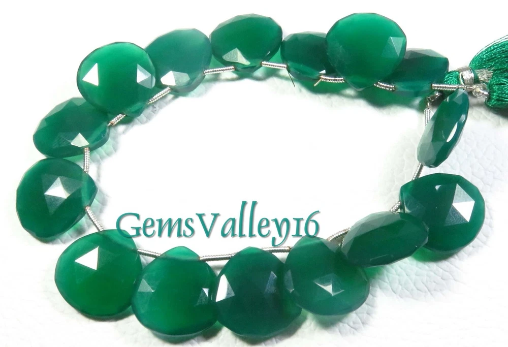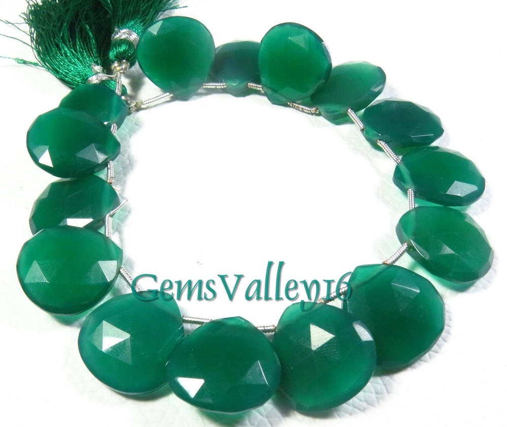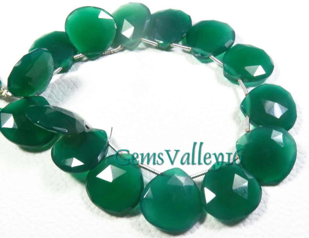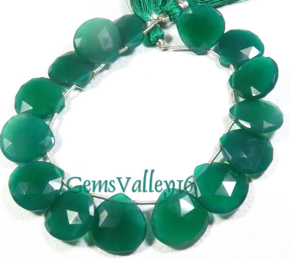Length: 7.5 Inch Strand Number of Pieces: 15 Color: Green Country/Region of Manufacture: India Type: Beads Brand: Unbranded Handmade: Yes Bead Size: 17 mm (approx.) Material: Gemstone Wholesale: Yes Size: 17 mm (Approx.) Drill Style: side drilled Hole Size: 0.45 - 0.50 (Approx.) Coating/Finish: Faceted Item Code: GV-1950 Style: Faceted Vintage: No Stone Type: Onyx Shape: Heart
