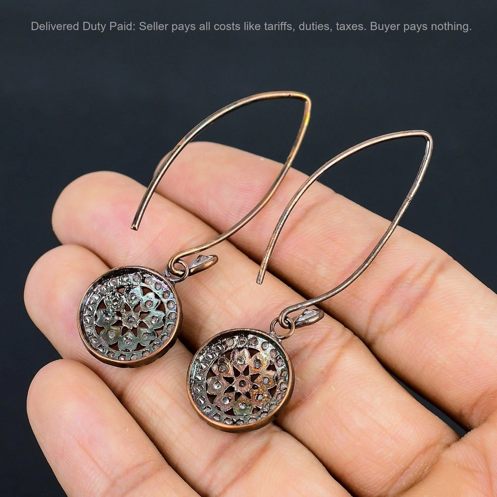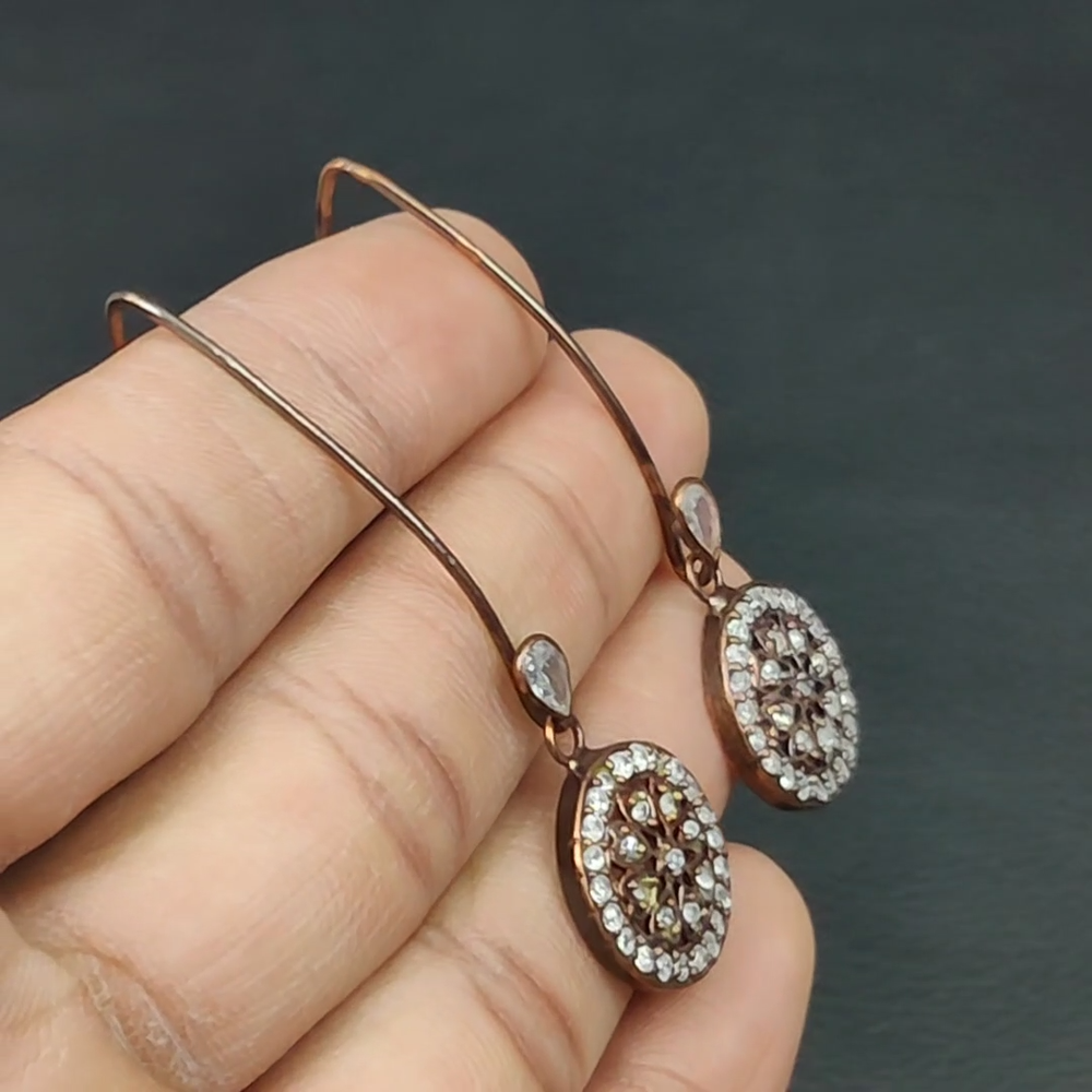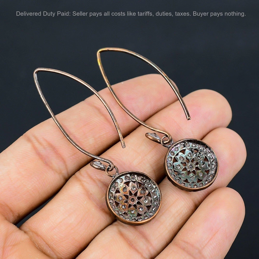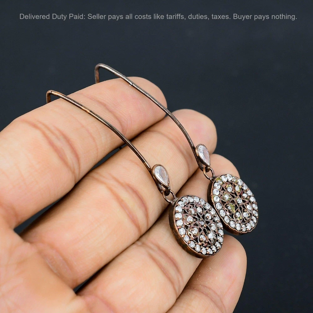 Welcome to bdenterprises123 Christmas Sale Natural White Topaz Copper Hook Electroformed Dangling Earrings Handmade Earrings, Wire Wrapped Earrings, Wire Wrapped Jewelry, Copper Pendant, Copper Wire Earrings, Wrapped Jewelry, Wire Wrap Earrings, Wire Wrap Jewelry SKU : HZE-38 Gemstone : White Topaz Stone Shape : Round Metal Purity : Unknown Copper Length : 62 Millimeters Width : 17 Millimeters Copper has been used for jewelry making for thousands of years, dating back to ancient civilizations such as the Egyptians, Romans, and Aztecs. Copper was valued for its beauty, versatility, and durability, and was often used to make everything from jewelry and coins to cookware and tools. In addition to its historical significance, copper jewelry also offers several benefits. Copper is a natural conductor of heat and electricity, which makes it ideal for energy healing and therapeutic purposes. Wearing copper jewelry is believed to have various health benefits, such as improving circulation, reducing inflammation, and boosting the immune system. Some people also believe that copper jewelry has the ability to balance energy and improve mood. For Mother's Day Gift For Father's Day Gift For Promise For Valentine's Day For Halloween Party For Christmas Day Gift For New Year Party For Mom For Her If you can't find the information you need or need some advice for your design? Feel free to contact us. We are fast to reply :) All our work is made by hand with Love and Care in our workshop Thank you so much for visiting and hope you enjoy shopping with us bdenterprises123 is committed to delivering the best quality sterling silver jewelry to customers. As a handmade jewelry manufacturer, we offer an extensive selection of copper gemstone jewelry that showcases the brilliance of our craftsmanship. We are an experienced handmade jewelry supplier with expertise in embellishing gemstones to suit every style. We offer you the liberty to create your jewelry ensemble with sparkling, earthy, and pure gemstones. Our Talented artisans masterfully handcraft each piece of jewelry you see here. Our pieces are made with genuine gemstones. The one-of-a-kind piece you see here is the same exact piece you will receive.