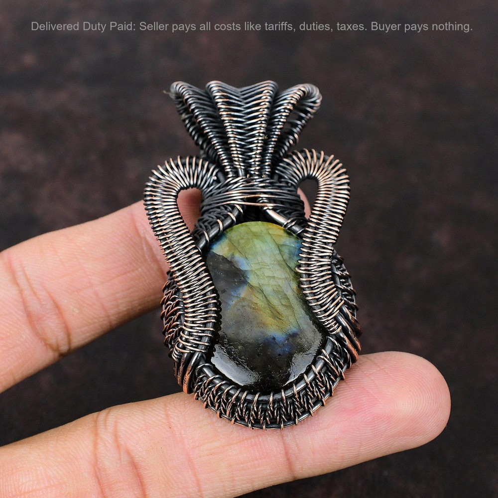 Note : Due to the natural formation of this gemstone. Slight variation in design and color are to be expected. Welcome to Silver Creation Christmas Sale Oval Labradorite Stone Copper Wire Wrapped Birthday Wife Pendant Handmade Pendant, Wire Wrapped Pendant, Wire Wrapped Jewelry, Copper Pendant, Copper Wire Pendant, Wrapped Jewelry, Wire Wrap Pendant, Wire Wrap Jewelry SKU : FWP-540 Stone Shape : Oval Metal Purity : Unknown Copper Length : 63 Millimeters Width : 37 Millimeters Copper has been used for jewelry making for thousands of years, dating back to ancient civilizations such as the Egyptians, Romans, and Aztecs. Copper was valued for its beauty, versatility, and durability, and was often used to make everything from jewelry and coins to cookware and tools. In addition to its historical significance, copper jewelry also offers several benefits. Copper is a natural conductor of heat and electricity, which makes it ideal for energy healing and therapeutic purposes. Wearing copper jewelry is believed to have various health benefits, such as improving circulation, reducing inflammation, and boosting the immune system. Some people also believe that copper jewelry has the ability to balance energy and improve mood. For Mother's Day Gift For Father's Day Gift For Promise For Valentine' Day For Halloween Party For Christmas Day Gift For New Year Party For Mom For Her If you can't find the information you need or need some advice for your design? Feel free to contact us. We are fast to reply :) All our work is made by hand with Love and Care in our workshop Thank you so much for visiting and hope you enjoy shopping with us Silvercreations is committed to delivering the best quality sterling silver jewelry to customers. As a handmade jewelry manufacturer, we offer an extensive selection of copper gemstone jewelry that showcases the brilliance of our craftsmanship. We are an experienced handmade jewelry supplier with expertise in embellishing gemstones to suit every style. We offer you the liberty to create your jewelry ensemble with sparkling, earthy, and pure gemstones. Our Talented artisans masterfully handcraft each piece of jewelry you see here. Our pieces are made with genuine gemstones.