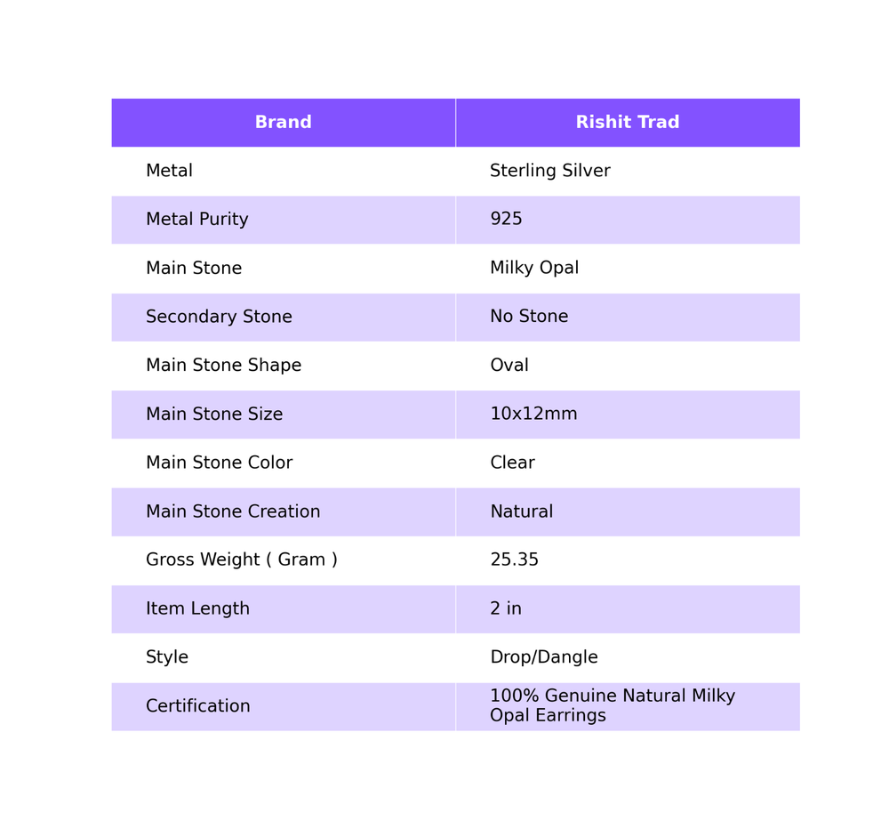 Make yourself trendy and stylish with this 925 Sterling Silver Earrings glittering with Milky Opal that will add majestic charm and elegance to your look. Exquisitely designed, this Earrings will provide you a classy look. ---------------------------------------------------- ------------ Welcome to Our Shop Rishittrad ---------------------------------------------------- ------------ Anniversary Gift For Her Natural Milky Opal Drop/Dangle Earrings 925 Silver Description:- SKU : - EE-87-13 Metal : - Sterling Silver Metal Purity : - 925 Gemstone : - Milky Opal Gemstone Color : - Clear Gemstone Shape : - Oval Gemstone Origin : - Natural Setting : - Bezel Earring Length : - 2 Inches Earring Width : - Inches ---------------------------------------------------- ------------ -------- ------------ Elegant Birthday Tribute:- Discover the essence of sophistication with our Birthday Radiance collection. Crafted with exquisite attention to detail, each piece embodies the timeless elegance and symbolic significance of birthdays. Craftsmanship Excellence:- Meticulously fashioned from premium 925 sterling silver, our jewelry pieces boast a classic and enduring design. The rich tones of natural gemstones complement the silver setting, creating a captivating harmony that resonates with wisdom and truth. Symbol of Personal Growth:- Gift with intention and meaning. Our Emblem of Wisdom pieces symbolize heartfelt wishes for personal growth and enlightenment on the recipient's special day, making it a cherished gesture of love and appreciation. Versatile Elegance:- Measuring at 1.2 inches, our creations seamlessly blend into any ensemble, offering both daily wearability and the ability to elevate sophisticated looks for special occasions. Their adaptable design ensures they become treasured additions to any jewelry collection. Thoughtful Expression of Love:- Surprise your beloved with a gift that transcends mere adornment. Our Natural Gemstone 925 Sterling Silver collection is a stylish and thoughtful token, exuding elegance and emotion while conveying warmest wishes with enduring grace. Exquisite Presentation:- Delight in the joy of gifting with our meticulously presented pieces, elegantly housed in an exquisite gift box. Make their birthday truly memorable by presenting them with a gift that captures the allure and timeless elegance of sterling silver. -------------------------- Image Policy----------------------------- All images are captured in natural lighting. The product showcased is the exact item you'll receive. -------------------------- Delivery Policy-------------------------- Standard Shipping typically takes 15-25 days, depending on your location. For expedited shipping, additional charges will apply. --------------------------- Product Policy--------------------------- You will receive the exact product depicted in the photos. All items are meticulously handcrafted. ------------------------------ Order Policy------------------------------ We welcome orders from around the globe. Custom orders are also accepted. Bulk orders are available upon request. Should you have any queries about our products, please don't hesitate to reach out. Upon receiving your product, we'd appreciate your feedback. ⋆⋆✦✧✦⋆⋆⋆⋆✦✧✦⋆⋆⋆⋆✦✧✦⋆⋆⋆⋆✦✧✦⋆⋆⋆⋆✦✧✦⋆⋆⋆⋆✦✧✦⋆⋆⋆⋆✦✧✦⋆⋆ "Discover a captivating collection of handcrafted gemstone jewelry at our boutique." https://www.ebay.com/str/rishittrad0 ♥ Thank you for choosing us ♥