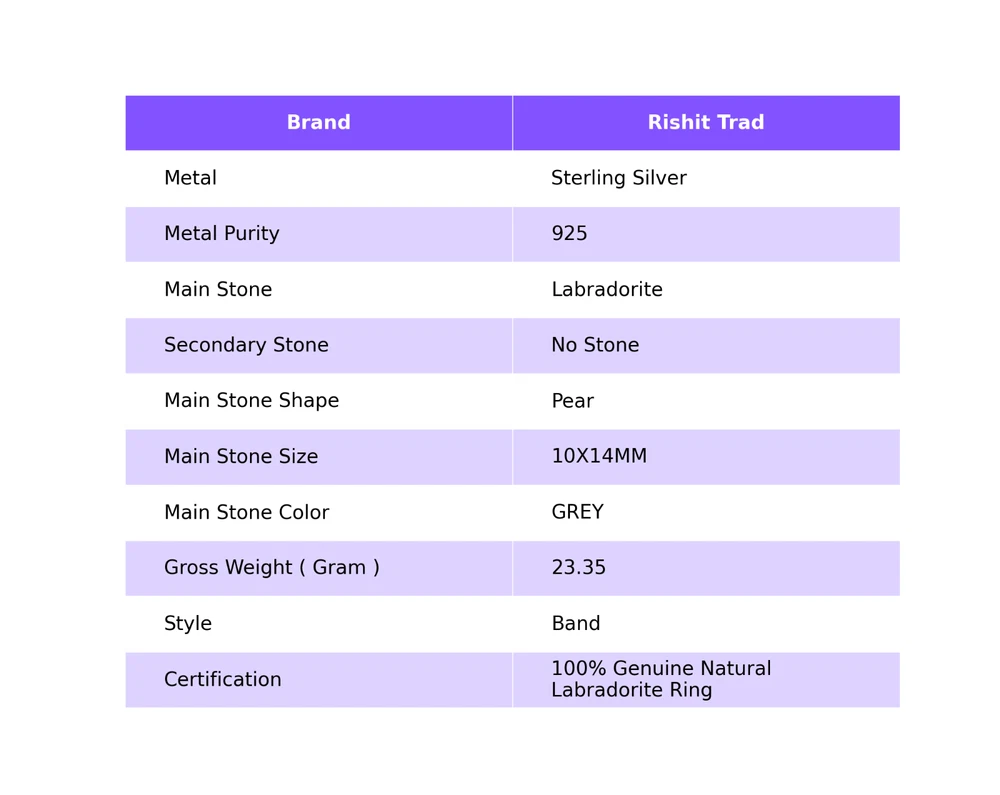 Add vivacity to your glamorous look by wearing this Rings by Rishit Trad. Featuring an ethnic handmade design, this Ring is embellished with Labradorite for a more feminine effect. Wear these 925 Sterling Silver Ring with your best casual outfits to look iconic. ---------------------------------------------------- ------------ Welcome to Our Shop Rishittrad ---------------------------------------------------- ------------ Labradorite Gemstone Band Ring Size 925 Sterling Silver Jewelry Description:- SKU : - RR-57-34 Metal : - Sterling Silver Metal Purity : - 925 Gemstone : - Labradorite Gemstone Color : - GREY Gemstone Shape : - Pear Gemstone Origin : - Setting : - Ring Size : - US ---------------------------------------------------- ------------ -------- ------------ Elegant Birthday Tribute:- Discover the essence of sophistication with our Birthday Radiance collection. Crafted with exquisite attention to detail, each piece embodies the timeless elegance and symbolic significance of birthdays. Craftsmanship Excellence:- Meticulously fashioned from premium 925 sterling silver, our jewelry pieces boast a classic and enduring design. The rich tones of natural gemstones complement the silver setting, creating a captivating harmony that resonates with wisdom and truth. Symbol of Personal Growth:- Gift with intention and meaning. Our Emblem of Wisdom pieces symbolize heartfelt wishes for personal growth and enlightenment on the recipient's special day, making it a cherished gesture of love and appreciation. Versatile Elegance:- Measuring at 1.2 inches, our creations seamlessly blend into any ensemble, offering both daily wearability and the ability to elevate sophisticated looks for special occasions. Their adaptable design ensures they become treasured additions to any jewelry collection. Thoughtful Expression of Love:- Surprise your beloved with a gift that transcends mere adornment. Our Natural Gemstone 925 Sterling Silver collection is a stylish and thoughtful token, exuding elegance and emotion while conveying warmest wishes with enduring grace. Exquisite Presentation:- Delight in the joy of gifting with our meticulously presented pieces, elegantly housed in an exquisite gift box. Make their birthday truly memorable by presenting them with a gift that captures the allure and timeless elegance of sterling silver. -------------------------- Image Policy----------------------------- All images are captured in natural lighting. The product showcased is the exact item you'll receive. -------------------------- Delivery Policy-------------------------- Standard Shipping typically takes 15-25 days, depending on your location. For expedited shipping, additional charges will apply. --------------------------- Product Policy--------------------------- You will receive the exact product depicted in the photos. All items are meticulously handcrafted. ------------------------------ Order Policy------------------------------ We welcome orders from around the globe. Custom orders are also accepted. Bulk orders are available upon request. Should you have any queries about our products, please don't hesitate to reach out. Upon receiving your product, we'd appreciate your feedback. ⋆⋆✦✧✦⋆⋆⋆⋆✦✧✦⋆⋆⋆⋆✦✧✦⋆⋆⋆⋆✦✧✦⋆⋆⋆⋆✦✧✦⋆⋆⋆⋆✦✧✦⋆⋆⋆⋆✦✧✦⋆⋆ "Discover a captivating collection of handcrafted gemstone jewelry at our boutique." https://www.ebay.com/str/rishittrad0 ♥ Thank you for choosing us ♥