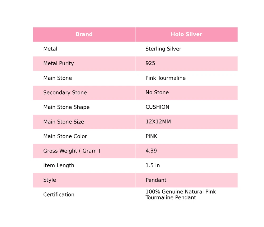 Welcome to Holo Silver Pink Tourmaline Gemstone Pendant Handmade 925 Sterling Silver Indian Jewelry Handmade Pendant, Sterling Silver Pendant, Pink Tourmaline Pendant, Handcrafted Pendant Elevate your jewelry collection with this exquisite silver pendant, showcasing a captivating pink tourmaline gemstone. The gemstone's cushion cut ensures a brilliant display of light and color, set off by the polished bezel setting. The pendant exudes a timeless elegance, making it a versatile choice for various occasions, from anniversaries and birthdays to more personal celebrations. Crafted with meticulous attention to detail, the piece is handcrafted in India, ensuring that each pendant is unique. It is engraved with a symbol of love and hearts, representing the bohemian and halo themes it embodies. The pendant is also nickel-free, catering to those with sensitive skin. Whether it's a treat for yourself or a special gift, this pendant is sure to charm. SKU : PP-2-12 Gemstone : Pink Tourmaline Stone Shape : CUSHION Metal Purity : 925 Sterling Silver Length : 1.5 Inches Width : Inches ___________________________________________________________________ Shipping Handling - Charge - Free ( Condition apply ) Handling Time - One business day . Delivery Time - 3 to 23 Days ( Various on destination ) Postage service - (A.) India Post - Below $100 order which takes 11 to 23 days . (B.) USPS, Fedex, DHL , Aramax- Order above $100 which takes 3 to 7 days . _________________________________________________________________ Returns - 1. We provide a 100% Money Back Guarantee, excluding shipping costs, within 30 days from the date of item receipt. 2. The item must not be altered or damaged in any way shape or form. 3. Upon receipt of the aforementioned items, your payment will be promptly refunded. 4. Please be so kind as to contact us via email in order to acquire comprehensive return instructions before proceeding with the return of the merchandise. 5. Kindly be advised to allocate a maximum period of 1 business day for the processing of all returns, in order for the appropriate credit to be applied. 6. Sizing does not affect the return policy. _________________________________________________________________ Payment - We accept PayPal for Payment , should made within three days once buying or winning done , in case of late information expected . _________________________________________________________________ FAQ's - Q.(A) ARE THE ITEMS YOU ARE SELLING BRAND NEW? We exclusively offer brand-new products, refraining from the sale of pre-owned jewelry. Our entire jewelry collection is composed of 100% natural, conflict-free pieces. We do not engage in the trade of imitation or lab-grown gemstones and diamonds. Q.(B) WHAT ARE YOUR BUSINESS HOURS? Our business hours are Monday to Friday, 10:00AM to 6:00PM, excluding holidays. ________________________________________________________________ Holo Silver is committed to delivering customers an unparalleled experience through the provision of exquisite handmade jewelry, meticulously crafted to uphold the most exacting standards of quality. Our operations encompass dual roles as both discerning connoisseurs and skilled artisans within the realm of jewelry making. We proudly hold an extensive proficiency in the fine art of enhancing gemstones, allowing us to harmonize them seamlessly with diverse aesthetic inclinations. We are delighted to extend to you the privilege of curating your very own jewelry collection. This collection will be graced by the presence of genuine and splendid natural gemstones, each possessing an innate authenticity and beauty that is truly unparalleled.
