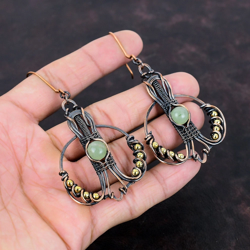 Christmas Sale Prehnite Stone Wire Wrapped Dangle Drop Earrings Jewelry Copper