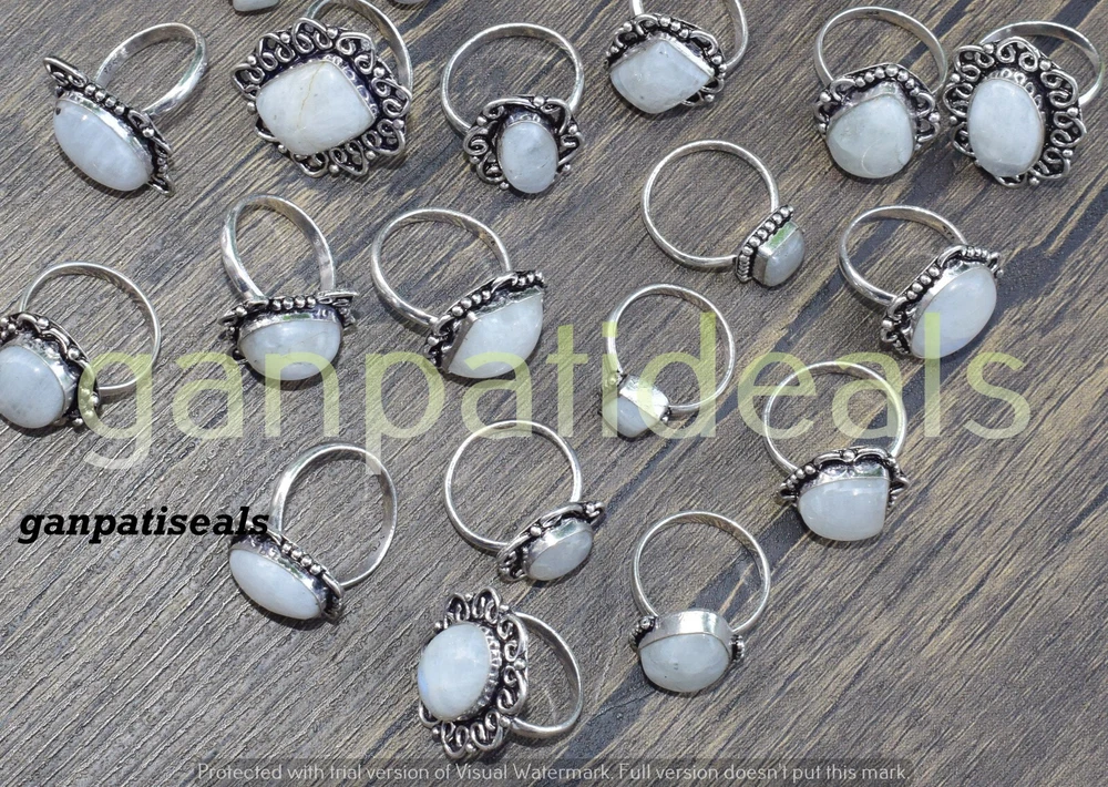 Brand: Handmade Color: Same As Picture Base Metal: Brass Antique: Yes Handmade: Yes Vintage: No Material: Stone Ring Size: Mix Shape: Mix Shape Country/Region of Manufacture: India Metal: Silver Plated Occasion: Anniversary, Birthday, Christmas, Engagement, Mother's Day, Valentine's Day Type: Fashion Ring Cut Grade: Excellent Metal Purity: 925 Main Stone Treatment: Not Enhanced Theme: Art, Beauty Seller Notes: “I am a wholesaler, I sell goods at wholesale rates, contact me through eBay” UPC: Dose Not Apply Signed: Yes Customized: No Secondary Stone: Unknown gtin13: Dose Not Apply Main Stone Color: White Gemstone Clarity Grade: Eye Clean Number of Gemstones: 1 Style: Charm Main Stone: Rainbow Moonstone Personalize: Yes Band Width: Mix Main Stone Shape: Mix Shape Wholesale: Yes Setting Style: Cluster Main Stone Creation: Lab-Created/Cultured Country of Origin: India