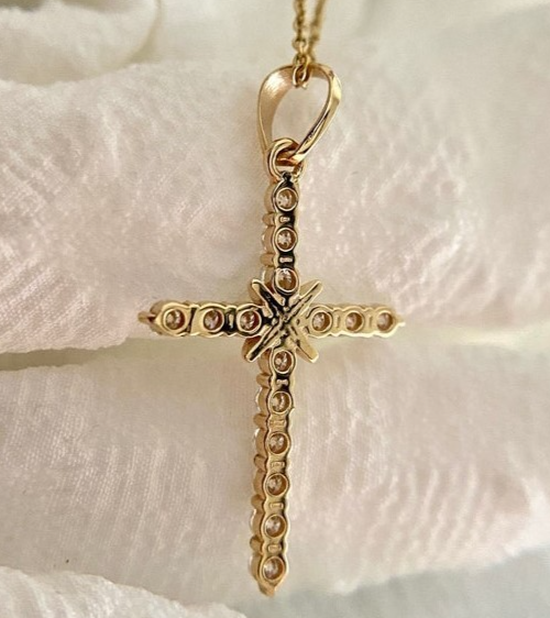 Brand: kashis_22 Metal Purity: 14k Diamond Clarity Grade: Very, Very Slightly Included (VVS1) Type: Pendant Main Stone Color: N/A Certification: N/A Chain Type: Without Chain Base Metal: Yellow Gold Setting Style: Cross Personalize: Yes Main Stone Creation: N/A Gemstone Clarity Grade: Loupe Clean Features: Adjustable, Nickel-Free Occasion: Anniversary, Birthday, Christmas, Engagement, Mother's Day, Valentine's Day, Wedding Cut Grade: Excellent All Stone: Moissanite Theme: Beauty Material: Gemstone Customized: Yes Total Carat Weight: 1.20 CT Pendant Shape: Cross Main Stone Shape: N/A Style: Cross Main Stone: N/A Metal: Yellow Gold Diamond Color Grade: F Wholesale: Yes Secondary Stone: N/A Colored Diamond Intensity: Very Light Country of Origin: India Seller Warranty: N/A Main Stone Treatment: Not Enhanced