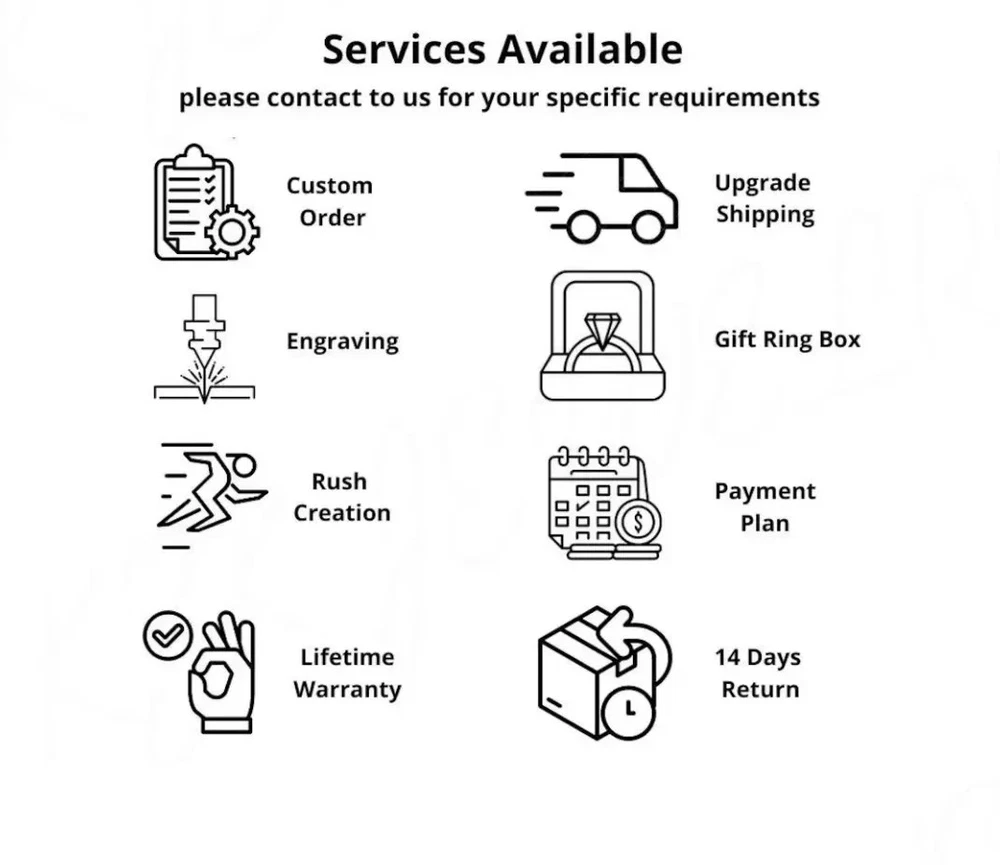 Welcome to Lurba_Jewel Note : This ring is made to order. Kindly confirm your ring size within 24 hours for speedy process of manufacturing. Gem Type Best Grades Hardness Moh's Scale Dispersion Or Fire ( Sparkle ) Diamond 10 2.42 Moissanite 9.25 2.65 ( more than diamond ) We offer Customization:- If you want to add personal touch to this piece contact us and we will create one just for you. You can customize the following things given below: Ring Resizing Change of stone color. Engraving (No. of characters will subject to size and space in the jewelry). PAYMENT POLICY:- We accept payment via PayPal only. You can also use a credit card for payment by using PayPal as a guest. Payment is required within 3 days after buying. SHIPPING POLICY:- We ship to Worldwide Handling time is 10 business days after receiving clear payment and ring size confirmation. (Business days excludes Saturdays/Sundays and Public Holidays). Delivery time will be 5-10 business days (which may extend during peak season time). Kindly provide complete address and contact number for hassle free shipping. Import duties, taxes and charges are not included in the item price or shipping charges. These charges and clearance of customs are buyer's responsibility. Please check with your country's customs office to determine what these additional costs will be prior to bidding/buying. RETURN POLICY:- We accept returns only if there is any manufacturing defect or in transit damage. Refund amount is based on product unit price. Shipping and handling charges are not refundable. Please remember to contact us before sending any item back. For incomplete or wrong address we are not liable for any return. If in any circumstances, the buyer is returning the product, the courier charges would be born by the buyer. BUYER'S FEEDBACK:- Your feedback is very important to us. Do remember to give us 5 star rating if you are satisfied with our product and service. If you have any queries related to the product or service you can expect a reply within 12-48 hours of inquiry. In case if you are not satisfied with your purchase, please give us a chance to resolve the issue. Do contact us before leaving a negative or neutral feedback to get a 100% solution for the dissatisfaction caused to you. CONTACT US:- Feel Free to contact us for any queries about the product through "Ask Seller a Question" THANK YOU VISIT AGAIN