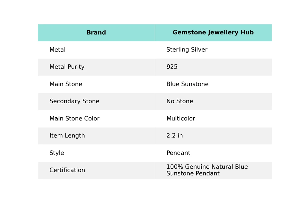 Welcome to Gemstone Treasure Hub Blue Sunstone Gemstone Indian Jewelry 925 Sterling Silver Pendant For Women Handmade Pendant, Sterling Silver Pendant, Blue Sunstone Pendant, Handcrafted Pendant SKU : MP-4326 Gemstone : Blue Sunstone Stone Shape : As Seen In Picture Metal Purity : 925 Sterling Silver Length : 2.2 Inches Width : Inches ___________________________________________________________________ Shipping Handling - Charge - Free ( Condition apply ) Handling Time - One business day . Delivery Time - 3 to 23 Days ( Various on destination ) Postage service - (A.) India Post - Below $100 order which takes 11 to 23 days . (B.) USPS, Fedex, DHL , Aramax- Order above $100 which takes 3 to 7 days . _________________________________________________________________ Returns - 1. We provide a 100% Money Back Guarantee, excluding shipping costs, within 30 days from the date of item receipt. 2. The item must not be altered or damaged in any way shape or form. 3. Upon receiving these items your payment will be refunded. 4. Kindly reach out to us via email to obtain return instructions prior to initiating the return of merchandise. 5. Please allow up to 1 business day for all returns to receivecredit. 6. Sizing does not affect the return policy. _________________________________________________________________ Payment - We accept PayPal for Payment , should made within three days once buying or winning done , in case of late information expected . _________________________________________________________________ FAQ's - Q.(A) ARE THE ITEMS YOU ARE SELLING BRAND NEW? We exclusively offer brand-new products, refraining from the sale of pre-owned jewelry. Our entire jewelry collection is composed of 100% natural, conflict-free pieces. We do not engage in the trade of imitation or lab-grown gemstones and diamonds. Q.(B) WHAT ARE YOUR BUSINESS HOURS? Our business hours are Monday to Friday, 10:00AM to 6:00PM, excluding holidays. ________________________________________________________________ Gemstone Treasure Hub is dedicated to providing customers with exceptional handmade jewelry crafted to the highest standards of quality. We operate as both connoisseurs and manufacturers of artisanal jewelry, possessing a profound expertise in the art of elevating gemstones to perfectly align with any aesthetic preference. We are pleased to offer you the opportunity to create your own jewelry collection, adorned with authentic and exquisite natural gemstones. Our team of highly skilled artisans painstakingly crafts each individual jewelry piece, ensuring the creation of products with a unique identity that feature genuine gemstones. The jewelry articles presented on our website accurately depict the precise pieces that you will receive.