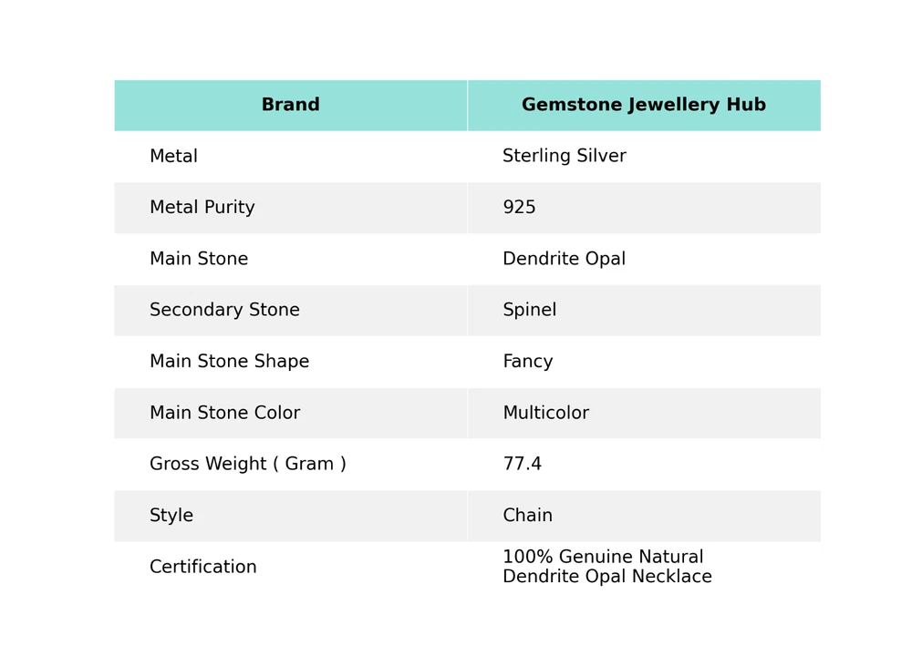 Welcome to Gemstone Treasure Hub Dendrite Opal Gemstone Chain Necklace 925 Sterling Silver Jewelry For Women Handmade Necklace, Sterling Silver Necklace, Dendrite Opal Necklace, Handcrafted Necklace SKU : AAN-232 Gemstone : Dendrite Opal Stone Shape : Fancy Metal Purity : 925 Sterling Silver Necklace Length: 18 Inches Adjustable : ___________________________________________________________________ Shipping Handling - Charge - Free ( Condition apply ) Handling Time - One business day . Delivery Time - 3 to 23 Days ( Various on destination ) Postage service - (A.) India Post - Below $100 order which takes 11 to 23 days . (B.) USPS, Fedex, DHL , Aramax- Order above $100 which takes 3 to 7 days . _________________________________________________________________ Returns - 1. We provide a 100% Money Back Guarantee, excluding shipping costs, within 30 days from the date of item receipt. 2. The item must not be altered or damaged in any way shape or form. 3. Upon receiving these items your payment will be refunded. 4. Kindly reach out to us via email to obtain return instructions prior to initiating the return of merchandise. 5. Please allow up to 1 business day for all returns to receivecredit. 6. Sizing does not affect the return policy. _________________________________________________________________ Payment - We accept PayPal for Payment , should made within three days once buying or winning done , in case of late information expected . _________________________________________________________________ FAQ's - Q.(A) ARE THE ITEMS YOU ARE SELLING BRAND NEW? We exclusively offer brand-new products, refraining from the sale of pre-owned jewelry. Our entire jewelry collection is composed of 100% natural, conflict-free pieces. We do not engage in the trade of imitation or lab-grown gemstones and diamonds. Q.(B) WHAT ARE YOUR BUSINESS HOURS? Our business hours are Monday to Friday, 10:00AM to 6:00PM, excluding holidays. ________________________________________________________________ Gemstone Treasure Hub is dedicated to providing customers with exceptional handmade jewelry crafted to the highest standards of quality. We operate as both connoisseurs and manufacturers of artisanal jewelry, possessing a profound expertise in the art of elevating gemstones to perfectly align with any aesthetic preference. We are pleased to offer you the opportunity to create your own jewelry collection, adorned with authentic and exquisite natural gemstones. Our team of highly skilled artisans painstakingly crafts each individual jewelry piece, ensuring the creation of products with a unique identity that feature genuine gemstones. The jewelry articles presented on our website accurately depict the precise pieces that you will receive.