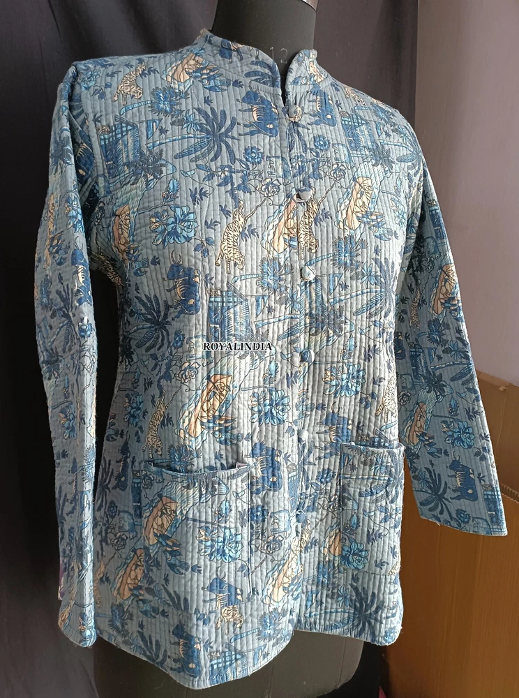 Description Item ~ Indian Handmade Quilted Cotton Reversible Jacket Coat etc. Color ~ Multi Size ~ L , XL , XXL , 3XL Jacket Length ~ 26" Inch ( 65 CM Approx ) Sleeve Length ~ 23 inches (58 Cm Approx.). Pockets ~ Yes (Two Pockets In Front ). Fabric ~ 100% Cotton Print ~ Block Print. Color ~ We always do our best to take good quality photographs to describe the products in detail. But due to Camera flash and screen resolution Images and their color may slightly vary. Condition ~ New & Good Condition. Wash Care ~ Wash Your Bathrobe By Hand Wash, Machine Wash & Dry Clean. (Do Not Use Brush). *Shipping Policy 1. We Are ship our Products with FedEx, DHL Express, Aramex, UPS, TNT etc. 2. We Provide the tracking Number same time when dispatch the orders. So you can easily track your orders. 3. Product Delivery time depends on shipping service type. Normally it’s take about 3-7 business days. 4. All custom duty and taxes are buyer's responsibility and will be paid by buyer. *Return Policy 1. As per the eBay policy, you have 3 days to inform us and 30 days to return it from the date of receiving. If this item is in your possession more than 7 days, it is considered USED and we will not be in the position to give you a refund or replacements. 2. All returned items MUST be in the original packaging, not be altered, damaged or wrong item and you must provide us the shipping tracking number, specific reason for the return. 3. Return goods charges would be paid by the buyer only. *Feedback Policy Our aim is delivering 100% customer satisfaction. We ship the product after performing the high quality check. After receiving products please move to give us positive feedback. Your feedback is valuable for us in next selling. In case of any issue please give one chance to us. And don't go directly for negative feedback. We will delivers you 100 % solution as possible and resolve your problem. *Other Products 1. We Are Also Selling Tapestry Wall Hanging, Cushion Cover, Pillow Cover, Pouf Cover, Screen Print & Hand Block Kantha Quilt Bedspreads/Blankets and many more under Home Decor Category. 2. We Are Also Selling Bathrobe, Kimono, Kaftans, Night Dress, Skirts & Trousers, Palazzo, Gown and many more under Women’s Clothing Category. 3. We Are Also Selling Screen Print Fabrics & Hand block Print Fabrics. Note: - !! Wholesale & Customize orders are appreciated!!