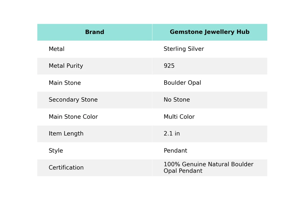 Welcome to Gemstone Treasure Hub Boulder Opal Gemstone Pendant 925 Sterling Silver Indian Jewelry For Women Handmade Pendant, Sterling Silver Pendant, boulder opal Pendant, Handcrafted Pendant SKU : MP-4283 Gemstone : boulder opal Stone Shape : As Seen In Picture Metal Purity : 925 Sterling Silver Length : 2.1 Inches Width : Inches ___________________________________________________________________ Shipping Handling - Charge - Free ( Condition apply ) Handling Time - One business day . Delivery Time - 3 to 23 Days ( Various on destination ) Postage service - (A.) India Post - Below $100 order which takes 11 to 23 days . (B.) USPS, Fedex, DHL , Aramax- Order above $100 which takes 3 to 7 days . _________________________________________________________________ Returns - 1. We provide a 100% Money Back Guarantee, excluding shipping costs, within 30 days from the date of item receipt. 2. The item must not be altered or damaged in any way shape or form. 3. Upon receiving these items your payment will be refunded. 4. Kindly reach out to us via email to obtain return instructions prior to initiating the return of merchandise. 5. Please allow up to 1 business day for all returns to receivecredit. 6. Sizing does not affect the return policy. _________________________________________________________________ Payment - We accept PayPal for Payment , should made within three days once buying or winning done , in case of late information expected . _________________________________________________________________ FAQ's - Q.(A) ARE THE ITEMS YOU ARE SELLING BRAND NEW? We exclusively offer brand-new products, refraining from the sale of pre-owned jewelry. Our entire jewelry collection is composed of 100% natural, conflict-free pieces. We do not engage in the trade of imitation or lab-grown gemstones and diamonds. Q.(B) WHAT ARE YOUR BUSINESS HOURS? Our business hours are Monday to Friday, 10:00AM to 6:00PM, excluding holidays. ________________________________________________________________ Gemstone Treasure Hub is dedicated to providing customers with exceptional handmade jewelry crafted to the highest standards of quality. We operate as both connoisseurs and manufacturers of artisanal jewelry, possessing a profound expertise in the art of elevating gemstones to perfectly align with any aesthetic preference. We are pleased to offer you the opportunity to create your own jewelry collection, adorned with authentic and exquisite natural gemstones. Our team of highly skilled artisans painstakingly crafts each individual jewelry piece, ensuring the creation of products with a unique identity that feature genuine gemstones. The jewelry articles presented on our website accurately depict the precise pieces that you will receive.