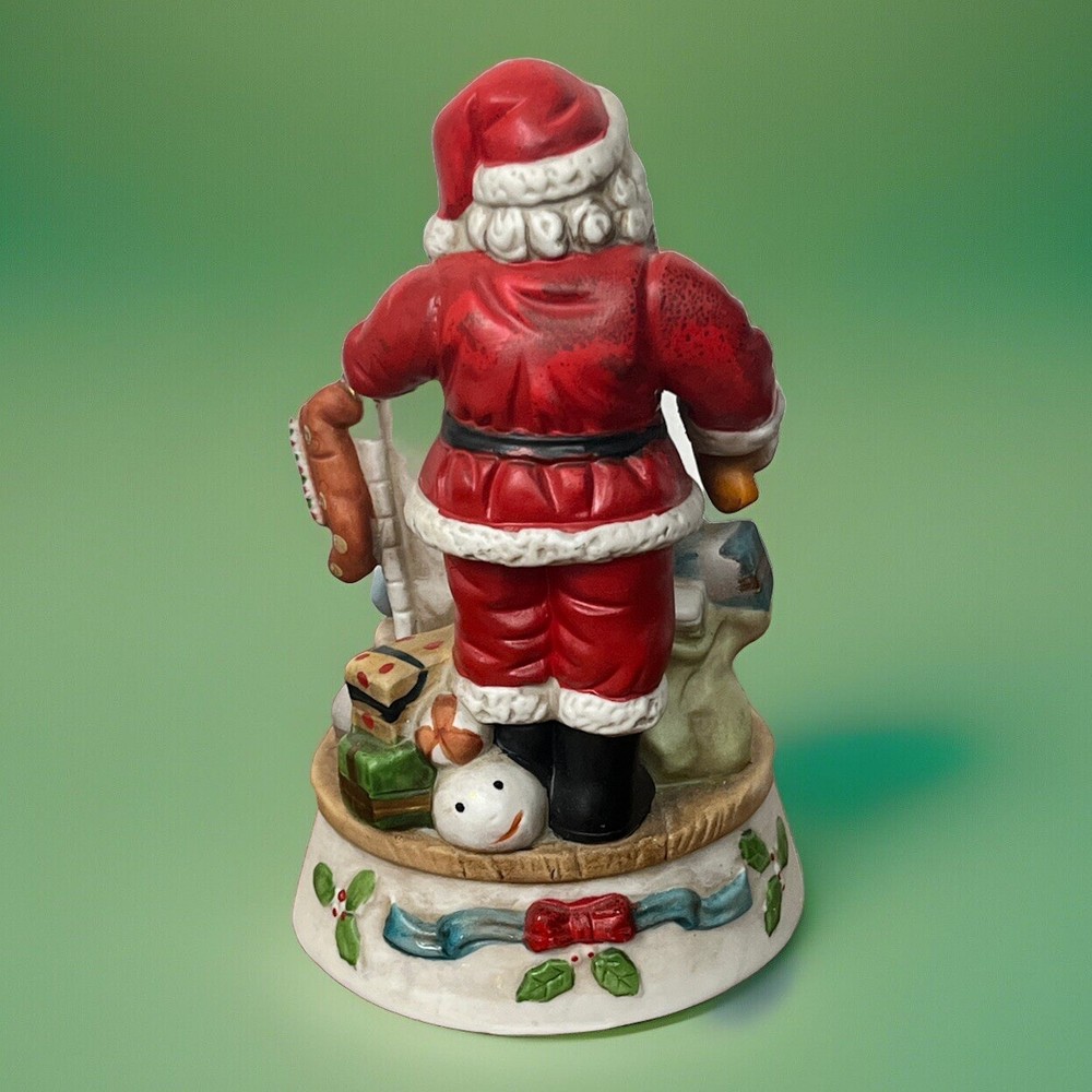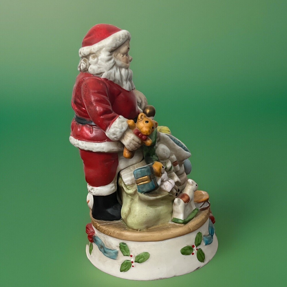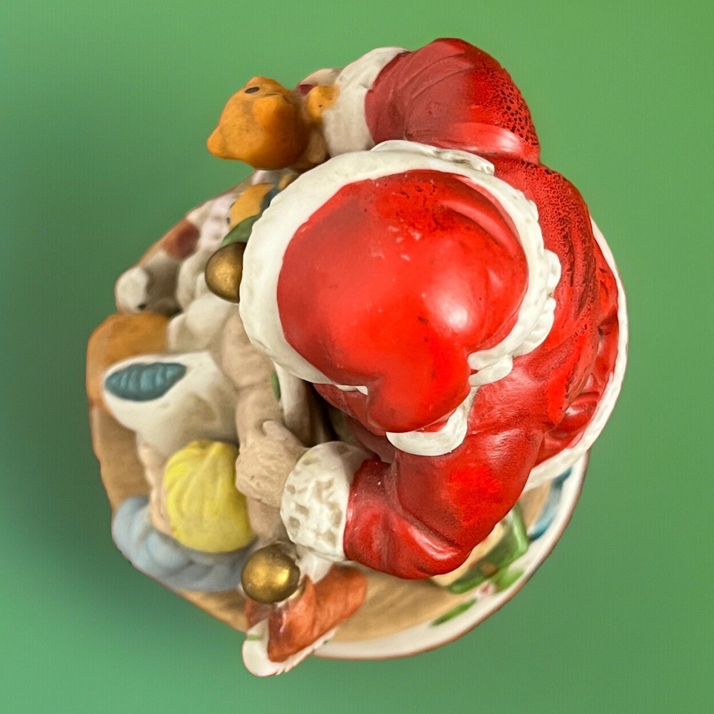 Santa Christmas Music Sleeping Children Porcelain Musical Figurine Height 7.75 Base Diameter 4.5 inches Turn key is missing to wind. Tested using pliers and it plays music. Does not turn. It might have had a base to turn.