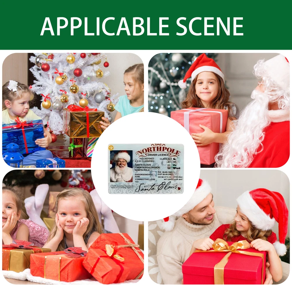 Christmas Santa Sleigh Reindeer License Santa Drivers License economical Bullet Points: Mystery and fun for Christmas: Surprise your kids with a Santa driver's license that looks authentic and realistic. This unique gift will increase the mystery and fun of Christmas and spread the Christmas spirit in your family. and : Made of solid PVC material, this Santa driver's license is not easy to break, is wear-resistant, and reusable for many years, it will maintain superb quality for years on end. Realistic Bevel: Give your Santa driver's license an authentic feel with the same level as a real driver's license. Professional printing ensures clear and long-lasting graphics for a credible look. Santa's identity verified: This product is a realistic Santa driver's license that shows his name, date of birth, address, photo, signature, and driving category. It is a great way to let your children better understand Santa's personal information. Memories: Capture the spirit of the season with Santa's driver's license, a treasured keepsake for your family. It's perfect to display at Christmas, add to your collection, or surprise someone in their stocking! Its clear printing and design help guard your child's fantasy of Santa Claus. Hang it on your Christmas tree and increase the fun of the holiday season. Product weight: 6g Product size: 5.5*8.5cm/2.16*3.34in Product material: PVC Product packaging: OPP bag Kind tips: 1. Due to reasons such as monitor color temperature, camera, ambient light, and photography skills, there may be slight color differences in the pictures of some products. The color is subject to the actual product! 2. Please allow slight size differences due to different manual measurements. Product List: Santa Claus Driving License*1 1.You can make a Credit payment via Paypal.Paypal will let you use MasterCard,Visa to pay. 2.Payment should be completed within 5 days after auction closed, or unpaid dispute will be filed for an closing auction.An unpaid case will be filled after 4 days. ● We strive for 100% customer satisfaction ! ● Positive Feedback is very important to us. ● We hope that you contact us immediately BEFORE you give us neutral or negative feedback, so that we can satisfactorily address your concerns. ● We promise to offer the lowest price and high quality produce. Dear buyers : ● Welcome to my store ! ● Your satisfaction is our top goal,we appreciate your patronizing. ● If you have any questions, please contact us before leave negative or neutral feedback, we will try our best to solve the issue to your satisfaction, thanks ! ● If you are satisfied with our service, please rate the details of the transaction (Detailed Seller Ratings) on eBay. ● Please always talk to us via ebay Message. ● We appreciate your business and look forward to growing our e-Bay sales with satisfied customers.
