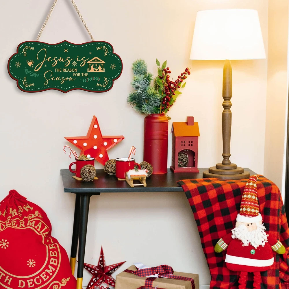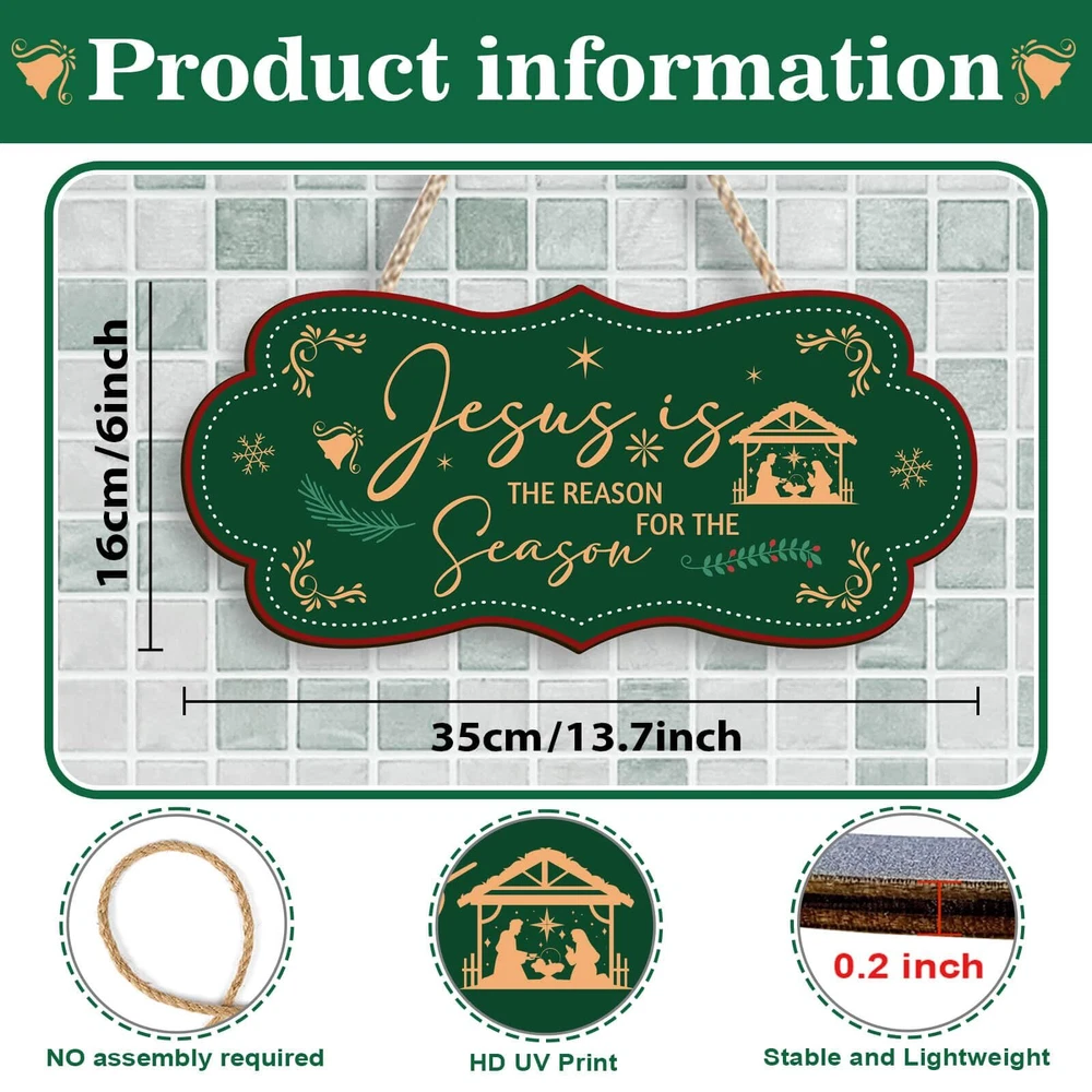 Christmas Signs for Wreaths, Jesus is the Reason for the Season, Christmas Welcome Sign for Front Door, Wooden Porch Decor Holiday Hanging Wall Art Decorations Jesus Christmas Decor Signs: Jesus is the reason for the season sign measures 13.7"x6", perfect size for nativity Christmas Jesus wall door porch wreath decorations, and each sign comes with a hemp rope string for easy hanging Material: Nativity Christmas wall decorations jesus is the reason for the season sign is made of PVC board which is durable, lightweight and water resistant, and can be applied for a long time, suitable for Christmas door wall decorations hanging outdoor indoor signs Jesus is the Reason for the Season Sign: Jesus Christmas decor signs with Christmas and nativity cross scene design, consists of the word "Jesus Is The Reason For The Season", which are full of Christmas and bright colors, create an artistic and lively atmosphere for your home Christmas holiday decoration Nativity Christmas Wall Door Decorations: Nativity Christmas wreath sign perfect home house office classroom Christmas wall decorations, Christmas door hanging sign decorations, nativity Christmas decorations, nativity wreath Christmas jesus decorations. Perfect Jesus is the reason for the season sign for Christmas wall door porch wreath decorations Great Jesus Sign for Christmas Decorations: It's a good choice to share these jesus is the reason for the season sign with your family, friends and children. Perfect nativity cross Scene plaques sign for Christmas door decorations and wall decorations which are full of love in winter, sharing happiness with them. Also, a great housewarming gift for your family or friends on Christmas day