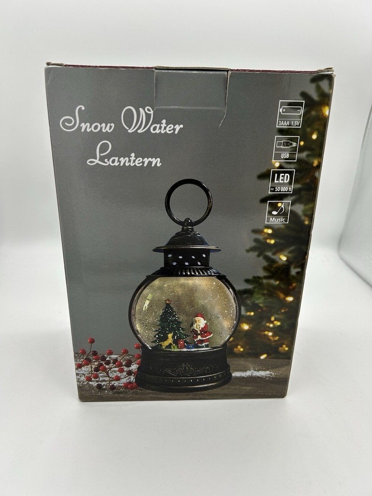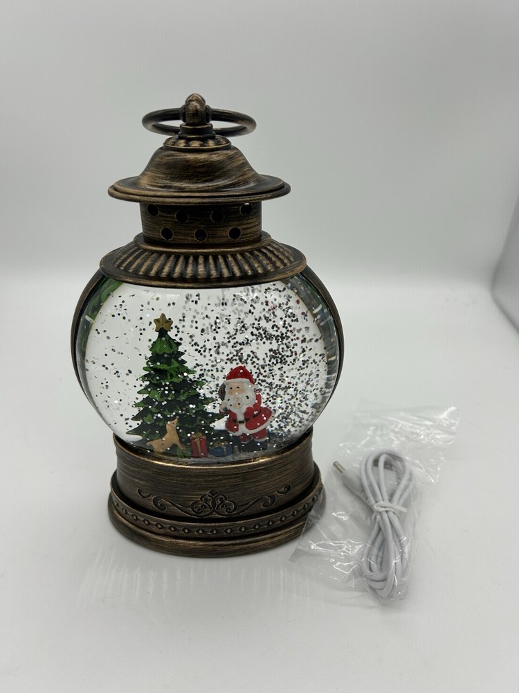 Christmas Snow Water Lantern Glitter Light Up Musical Snow Globe Santa and Puppy When turned on a warm LED light shines on the figurine and swirling glitter to give the Christmas globe a whimsical look for the Christmas Holiday Season. The switch is on the base and there are three control modes: Light up with music/off/Light up only. Powered by USB cable (included), the snow globe can also operate with 3 AAA batteries so it can be placed anywhere you want to add warm ambiance.