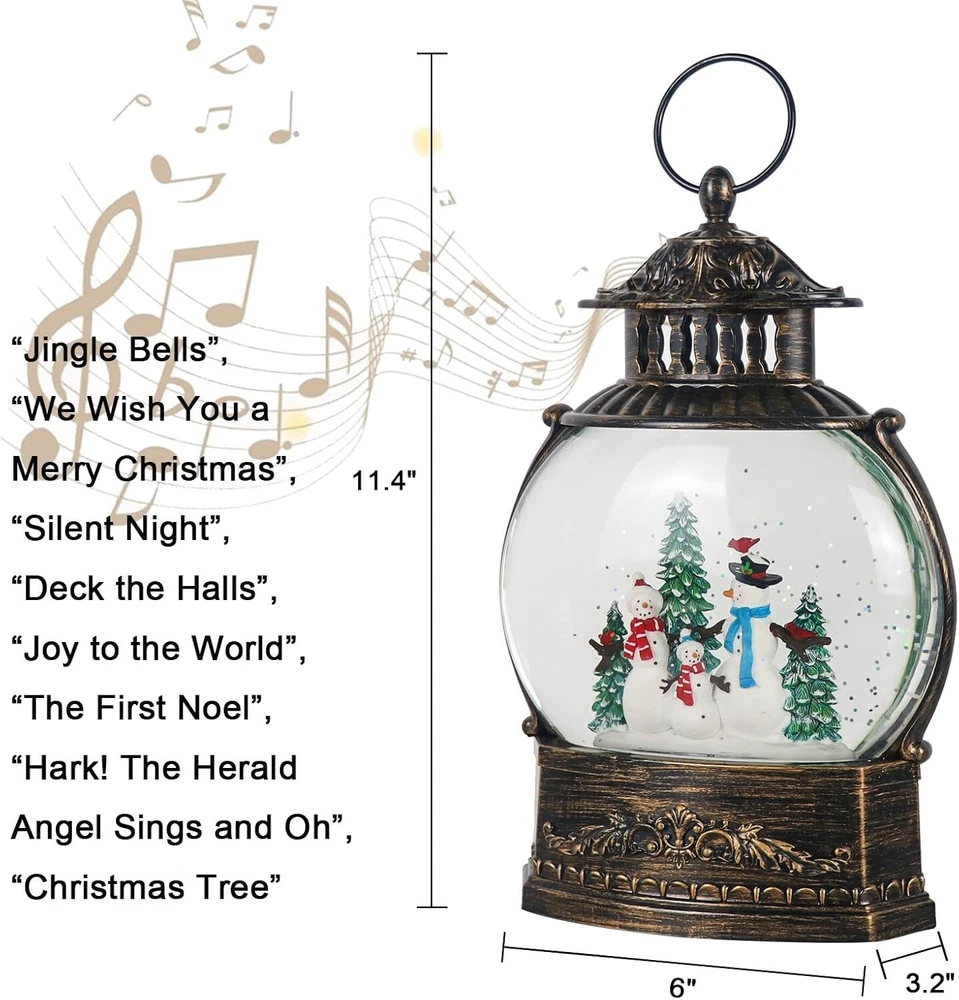 Free eBay listing template designed by dewiso.com Christmas Snow Globe About this item WHAT YOU WILL GET: You will get 1 pcs Water Snow Globe Lantern with music, which can be operated by USB cord (included) or 3 AA batteries( not included). Product dimension is 6" x 3.2" x 11" MUSIC PLAYING: The Snowman snow globe lantern cycle playing the music, please check the following product video for more details. TIMER-OFF-MUSIC: There is a 3-way switch. Switch to TIMER position, the LED lantern light on and the glittering swirling for 6 hours and off for 18 hours, cycle every 24 hours. Switch to Music position, the light on and music playing until you turn it off manually. POWER SUPPLY: Included USB to DC cable allows you operate the snow globe lantern without batteries. You can also operate it with 3 AA batteries, so that you can place them any where you want. DECORATION & GIFT CHOICE: Sweet decoration for your home on Christmas day, and perfect gift choice for your loved ones. Gift wrapping box suit all ages, and this lantern can last for several seasons. Shake up your Christmas this year with a fun and festive way with the help of this fantastic Lighted Glittering Globe Lantern! Great gift choice for your friends and families to celebrate the upcoming Christmas Holiday, they will love it at the first sight. Housed in a lantern, this swirl water glitter lantern lights its own space and plays music once powered on, no worries of manual constant handling. Music playing features create festival celebration atmosphere and perfect decoration for your fireplaces, tables and mantles. Two power supply modes, powered by 3 AA batteries, can also be powered via DC4.5V/0.5A Adapter(not included)+USB power line (included). Convenient timer function, saving the trouble of turn on and off, 6 hours on and 18 hours off, automatically cycle every 24 hours. Contact us We can be contacted at any time through eBay messages if you have any questions, comments or product requests. We will respond to you within 24 hours and do our best to help you out! We encourage our customers to contact us with any questions or concerns! We'd like to be sure you are completely satisfied with your purchase.