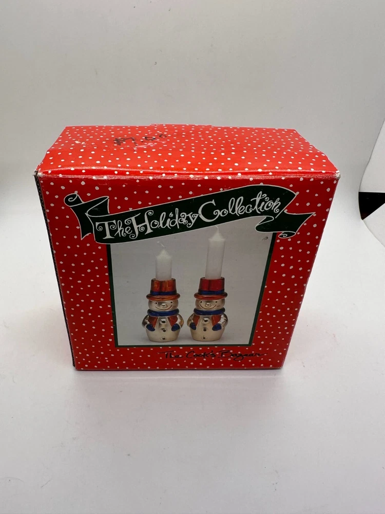 Christmas Snowman Candle Holders Cooks Bazaar Holiday Col. Goldtone Decoration