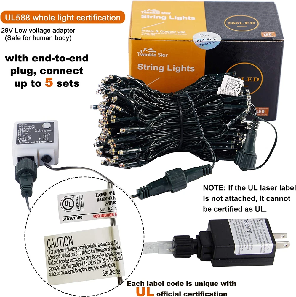 Color: Multicolor-2 Size: 1 Pack Brand: Does not apply Included Components: '29V safe power adapter', 'remote control', '200 LED Christmas St Voltage: 29 Volts Item Weight: 1.3 Pounds Style Name: 11 Lighting Modes Number of Light Sources: 200 Item Dimensions: 6 x 3 x 3 inches Type: Does not apply Style Number: CL-200 C Indoor Outdoor Usage: Outdoor, Indoor Batteries: 1 CR2 batteries required. (included) Control Method: Remote Seasons: Christmas Item model number: CL-200 C Light Color: White, Warm White Theme: Star Number of Batteries: 1 CR2 batteries required. (included) Power Source: Corded Electric Indoor/Outdoor Usage: Outdoor, Indoor Water Resistance Level: Not Water Resistant Number of Items: 1 Light Source Type: LED Occasion: Wedding, Christmas Style: 11 Lighting Modes Product Dimensions: 6 x 3 x 3 inches; 1.28 Pounds Occasion Type: Wedding, Christmas gtin13: 7445002818834 UPC: 7445002818834 Additional Features: Color Changing Special Feature: Color Changing Controller Type: Remote Control