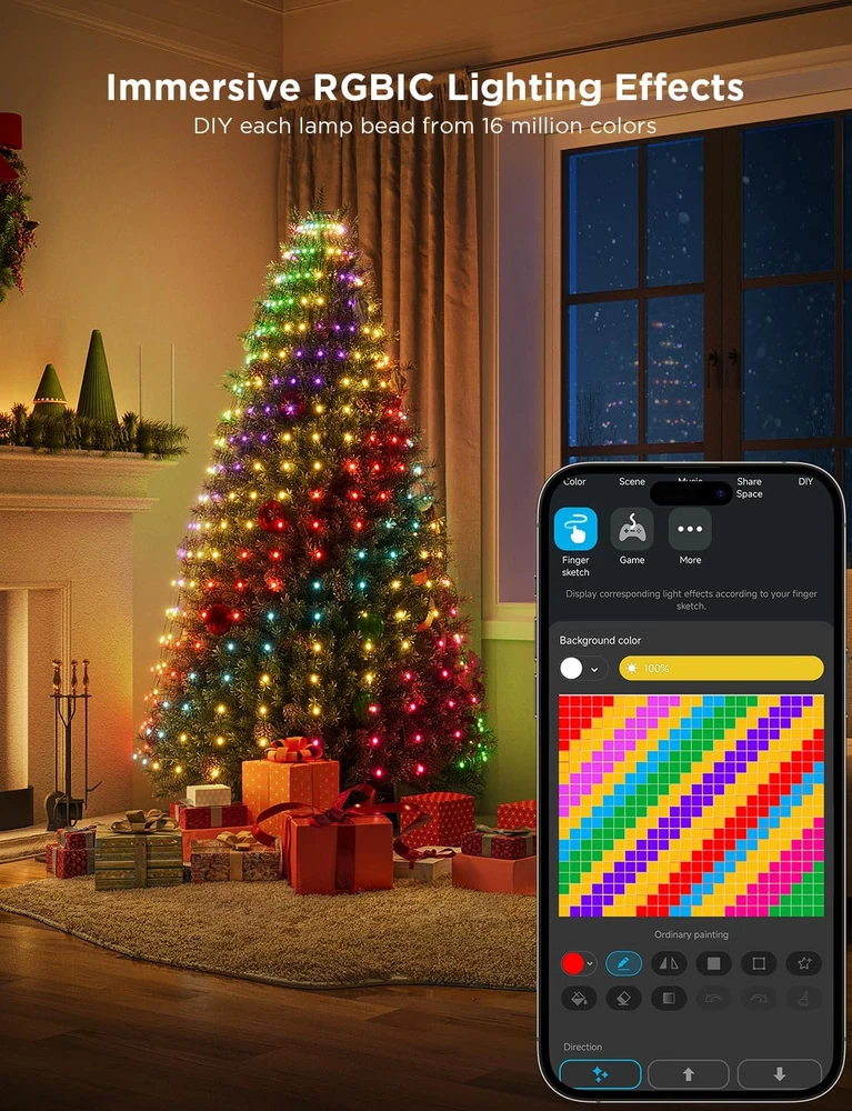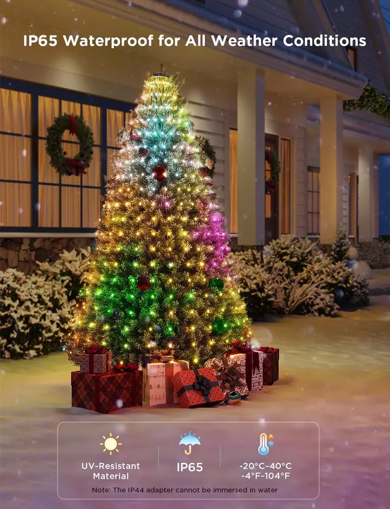 Store New Arrivals Add to Favorite View Feedback Contact Fast deliveries to the customer's home Quality customer service John Make the customers happy! Christmas Tree Lights, Smart RGBIC 480 Leds Christmas Lights Outdoor, 6.6Ft × 24 String Lights for Holiday Decor, IP65 Waterproof, Music Sync, Voice Control, 60+ Scene Modes, Green Wire Description Hassle-Free Installation: Govee Christmas tree lights come with mounting rings, bar support, cable ties, and U-shaped straps to help you quickly install your Christmas tree decorations. Creating a Christmas holiday atmosphere that's super easy to setup. Elaborate RGBIC Lighting: With an upgraded LED design, Govee Christmas tree lights offer smooth and uniform lighting effects, chosen independently from 16 million color options. Enjoy 480 LED beads densely arranged for brighter Christmas decoration. 60+ Dynamic Scene Modes: The versatile preset modes of Govee Christmas lights are designed to meet every demand for any occasion, including simple figurative light effects on Christmas trees. Celebrate festivals based on your holiday vibes. Built to Last: Govee Christmas tree lights are IP65-rated and made from anti-UV material. Whether rain, shine or snow, enjoy light shows from -4°F to 104°F. (Note: The IP44-rated adapter cannot be immersed in water) Smart App Control: Govee Christmas Tree Lights let you take control from anywhere with Govee Home App or Matter for versatile lighting. Utilize Alexa & Google Assistant for smart voice control, while Music mode and DreamView help build an audio-visual feast. Note: Govee Christmas tree lights have 480 LED beads and 24 light strings. Each line is 6.6ft long and equipped with 20 LEDs, which are suitable for most popular Christmas trees from 6.5ft to 8ft. The 11.5ft power line allows you to place the tree lights anywhere. Product Description The video showcases the product in use. The video guides you through product setup. The video compares multiple products. The video shows the product being unpacked. 1 Holiday Decor 2 Christmas Decor 3 Thanksgiving Decor 4 Halloween Decor 5 Party Decor 1 DIY 2 Finger Sketch 3 Timer 4 Game Mode 1 Indoor Holiday Decor 2 Outdoor Holiday Decor Govee Christmas String Lights Customer Reviews 4.4 out of 5 stars 7 4.0 out of 5 stars 36 4.7 out of 5 stars 834 4.1 out of 5 stars 55 4.3 out of 5 stars 30 4.7 out of 5 stars 75 5.0 out of 5 stars 2 Price $94.99 $ 94 . 99 $129.99 $ 129 . 99 $79.99 $ 79 . 99 $149.99 $ 149 . 99 $139.99 $ 139 . 99 $149.99 $ 149 . 99 $299.99 $ 299 . 99 Size 6.6ft*24 light strings 99ft 66ft 4.9*6.6ft 33ft 2.8*9.4ft 99ft + 4.9*6.6ft + 33ft Number of Light Beads 480 LEDs 300 LEDs 200 LEDs 520 LEDs 400 LEDs 480 LEDs 520+300+400 LEDs Power Cable Length 11.4ft 3.3ft 3.3ft 5.9ft 5.9ft 13ft 5.9ft / 3.3ft / 5.9ft Cable Color Green Green Clear Clear Clear Green Clear*2+Green*1 Lights Color RGBIC RGBWIC RGBIC RGBIC RGBIC RGBIC RGBIC IP Rating of Lights IP65 IP65 IP65 IP65 IP65 IP65 IP65 IP Rating of Adapter IP44 IP44 IP44 IP44 IP44 IP44 IP44 Operating Temperature Range -4°F to 104°F (-20℃ to 40℃) -4°F to 104°F (-20℃ to 40℃) -4°F to 104°F (-20℃ to 40℃) -4°F to 104°F (-20℃ to 40℃) -4°F to 104°F (-20℃ to 40℃) -4°F to 104°F (-20℃ to 40℃) -4°F to 104°F (-20℃ to 40℃) DIY Function ✔ ✔ ✔ ✔ ✔ ✔ ✔ Splicable Function ✘ ✘ ✘ ✘ ✘ ✘ ✘ Matter Compatibility ✔ ✔ ✘ ✔ ✔ ✔ ✔ Item model number H6800 Light Source Type LED Number of Items 1 Power Source Corded Electric Country of Origin China Theme Christmas Style Number H6800 Material Plastic Occasion Type Christmas, Halloween Seasons All Seasons Additional Features 60+ Preset Scene Modes, Smart APP & Voice Control, IP65 Waterproof (Note: place the IP44-rated power adapter within a watertight box for outdoor use), Hassle-Free Installation, Immersive RGBIC Lighting Effects Package Dimensions 10.16 x 6.73 x 4.13 inches; 2.69 Pounds Indoor/Outdoor Usage Outdoor, Indoor Material Type Plastic Light Color Multicolor Occasion Christmas, Halloween Special Feature function(f) {var _np=(window.P._namespace("DetailPageProductOverviewTemplatesJava"));if(_np.guardFatal){_np.guardFatal(f)(_np);}else{f(_np);}}(function(P) { P.when('A').execute(function(A){ A.on('a:truncate:po-attribute-truncate-3:updated', function(data) { var isTruncated = !data.truncateInstance.getIfTextFits(); var seeMoreElement = document.getElementById('po-attribute-see-more-id-3'); if(seeMoreElement) { seeMoreElement.style.display = isTruncated ? '' : 'none'; } }) }); })); 60+ Preset Scene Modes, Smart APP & Voice Control, IP65 Waterproof (Note: place the IP44-rated power adapter within a watertight box for outdoor use), Hassle-Free Installation, Immersive RGBIC Lighting Effects See more Color Multicolor Wattage 25 watts Indoor Outdoor Usage Outdoor, Indoor Voltage 5 Volts Included Components U-Shaped Bracket x 1, Cable Ties x 5, Bar Support x 1, Christmas Tree Lights x 1, Adapter x 1 ABOUT US We offer the best prices around on high quality products. Our E-store includes media such as books, movies, music and games while offering electronics, toys, sporting apparel, clothing, tools, general home, garden items and more. SHIPPING We are always working hard to ensure your package arrives as soon as possible. Please understand that some factors like weather, high postal traffic, and the performance of shipping companies are outside of our control. We offer free shipping to the lower 48 states and ship within 2 business days of payment, usually sooner. We do not accept P.O. Boxes. Please provide a physical address. For shipping outside of the continental USA, we only use eBay's Global Shipping Program. The item is shipped to KY and then sent to the rest of the world. International customers are responsible for all duties and taxes. Continue to 'check out' to calculate costs for shipping the item to your country. Messages regarding eBay's Global Shipping Program MUST be directed at eBay EXCLUSIVELY.