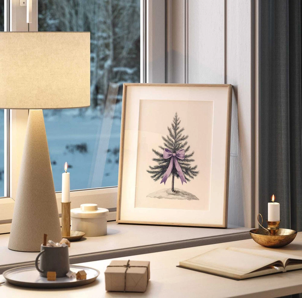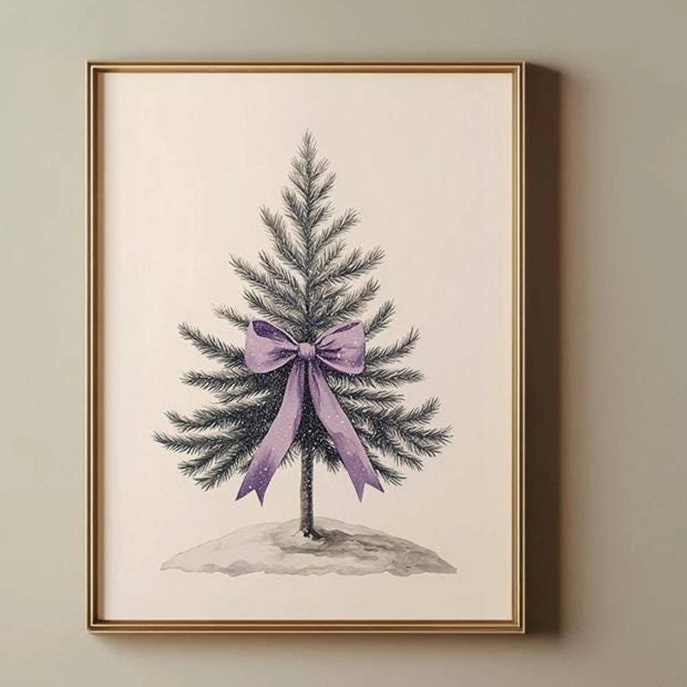 Christmas Tree Prints Vintage Christmas Tree Bow Wall Art Coquette Purple Christmas Spruce Winter Decor Pine Tree Xmas Art Material: Premium luster photo paper Print type: Inkjet printing One side printed + The finish provides the highest possible resolution and color saturation + Lasts up to 200 years in color and 400 years in black-and-white + Printed on high-quality resin-coated photo base paper medium + Posters can be hung with double-sided tape, tacks, or framed + Hand washing with a gentle cry cloth is recommended for extended durability I will hand select the best choice of paper for your chosen design to ensure top quality results for a beautiful, bright and luxurious print. All prints are sealed in cellophane slips for protection during transportation, and are shipped in a protective cardboard envelope.