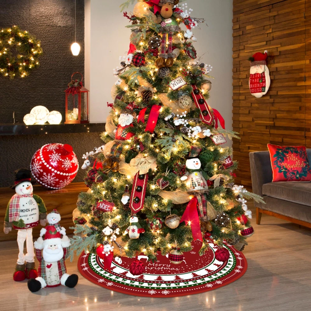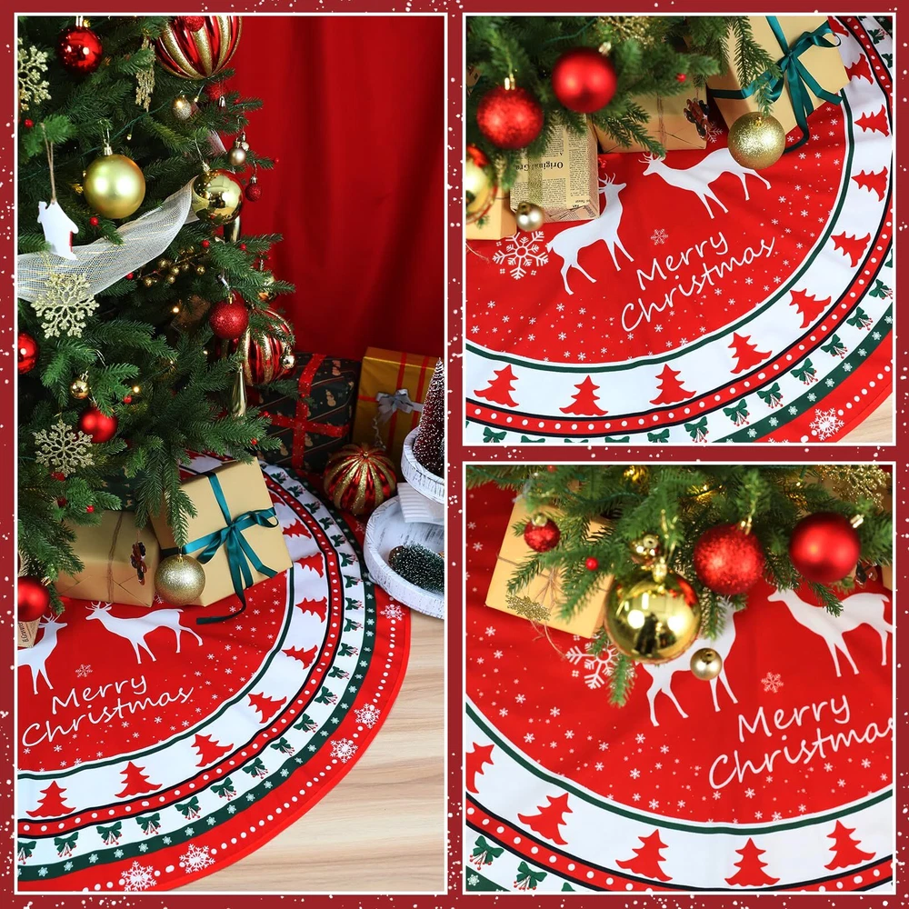 The red tree skirt made of thick and soft material. Premium material:The red and Green Christmas tree skirt is made of thick and soft material. The surface is covered with ultra-fine velvet which is smooth and soft to touch, super sturdy and lightweight, colour is long lasting. The Christmas tree mat is very soft and cozy to the touch, polyester on the bottom helps the skirt stick better to the ground, which can bring you an excellent hand feeling and a good viewing experience. Perfect Size: Our Christmas tree skirt size design of 48 inches, fits most Christmas trees and is large enough to cover the frame under the tree.The red and Green Christmas tree mat is the perfect habitat for all your exquisite Christmas gifts, you can put your favorite decorations or gift on the tree skirt, which can make the Christmas tree more gorgeous and fashionable, adding a stronger Christmas atmosphere. Exquisite design: The Christmas tree skirt design is cute and vivid. The warm red background, small Christmas tree and bow, vivid Christmas reindeer and Christmas tree complement each other, very elegant and comfortable! The cute snowflake design and letters also add a comfortable atmosphere, making your Christmas home decoration more dazzling! Easy to install: The Christmas tree skirt just needs to be laid under the Christmas tree, the durable rope can be easily and quickly adjusted to best fit your Christmas tree. You can tie the string into a bow, it not only adds to the beauty of the tree but is easier to install and remove. Our christmas tree mat can be reused, and simple folding can be stored away, keep using it on your next holiday! Quality service: We have been committed to bringing customers a good shopping experience. If you have any dissatisfaction after receiving our Christmas tree skirt, please do not hesitate to contact us, and we will give you the most satisfactory answer. This classic red and green Christmas tree mat is perfect for Christmas holiday family gatherings, indoor, living room, bedroom, garden, supermarket or other places for Christmas tree decorations, you can also give it as a warm Christmas gift to your family and friends.