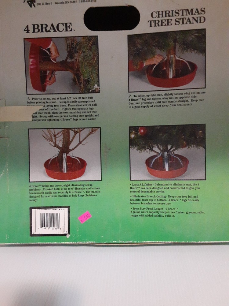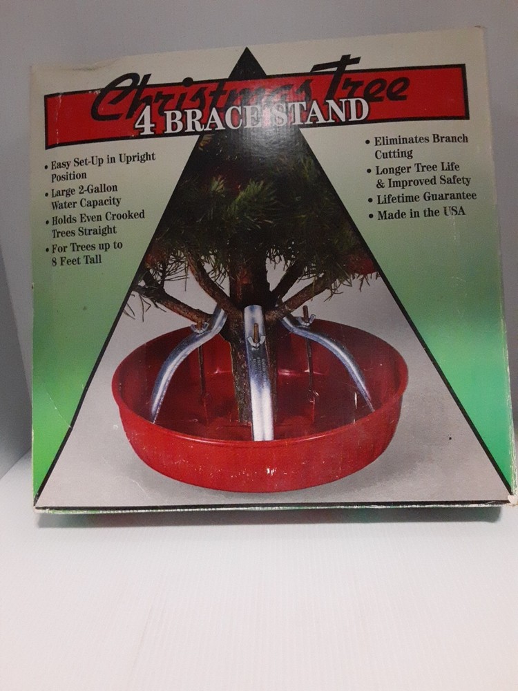 This is a great tree stand! It holds a medium or large tree up to 8 feet tall, and holds 2 Gallons of water! No more crawling under the tree every other day trying to water it without crushing the gifts or soaking the tree skirt. Has only been used one or two seasons.