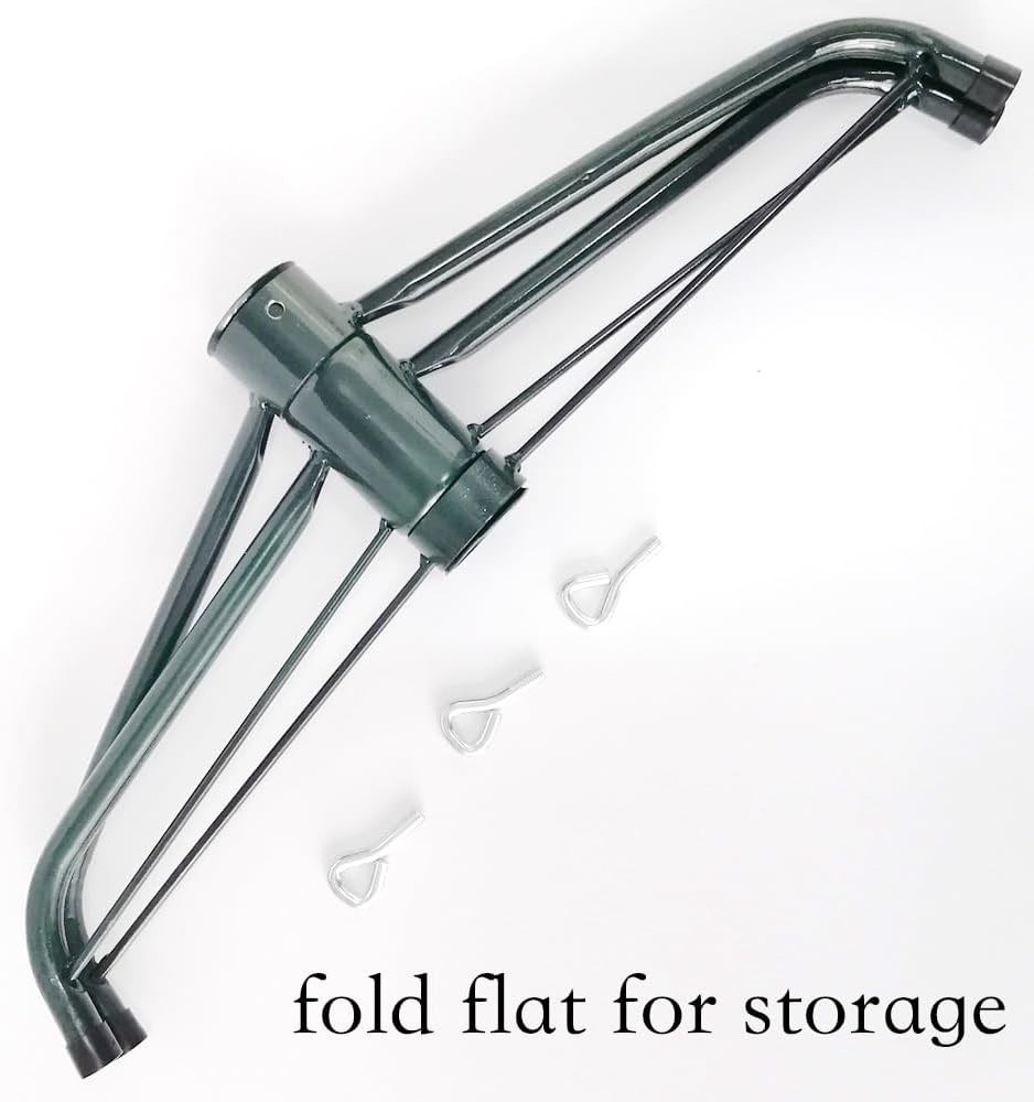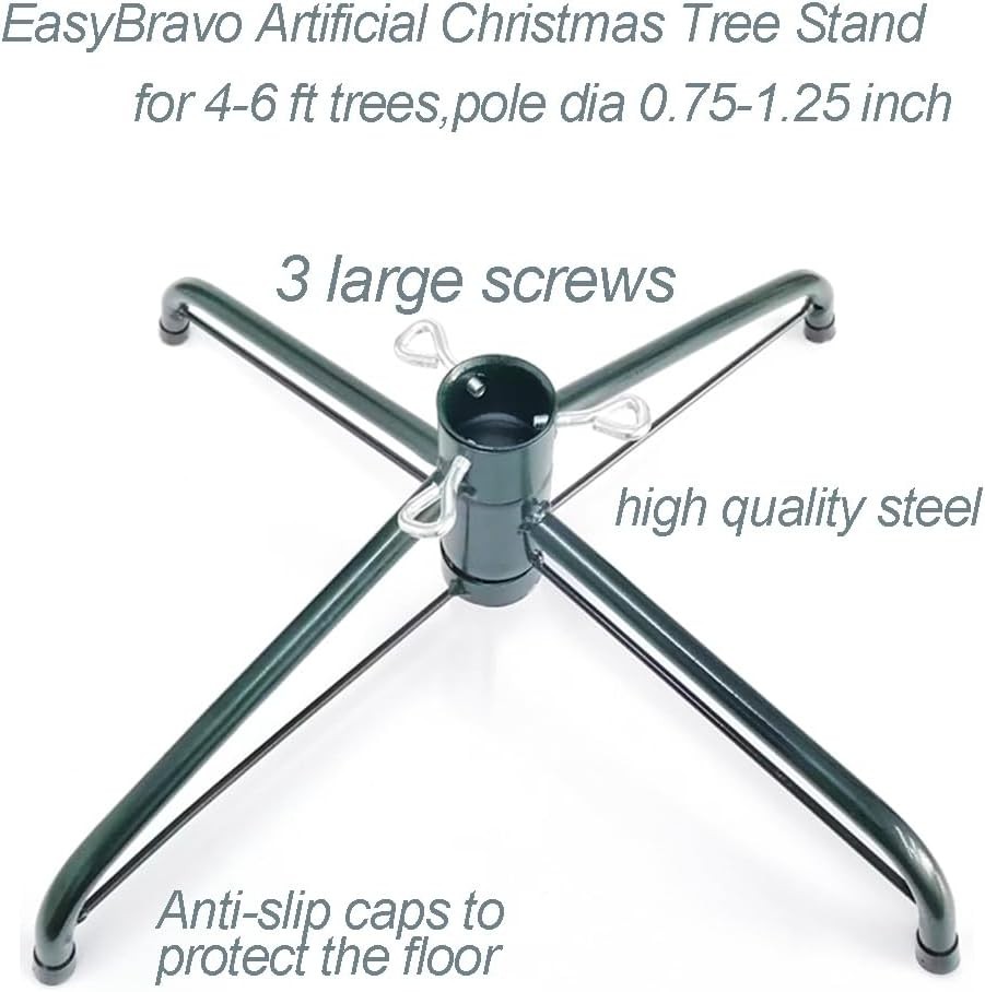 NOTICE:Suitable for artificial trees whose height less than 180cm( 6' ) , dia less than 1.9-3.2cm/0.75-1.25". Bottom Length: 40.5cm/ 16". 4 Legs fold flat for storage. Three thumb screw included. Material: Made of high quality iron.