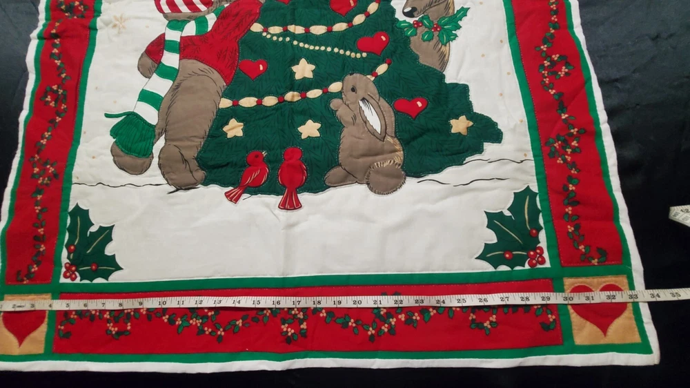 The Woodland Creatures Have Gathered To Trim The Tree In This Delightful Print. This is a "ready to sew" panel that has been completed to be a wall hanging, lap throw, table topper, or anything else you desire for your Christmas decor. It does have a some small dots, mainly on the back, that appear to be an overspray of some sort. I didn't stain treat before washing, unsure if they come out. I've also shown a close up of the specks on the front. Items May Be In Condition They Were Acquired In And May Need Cleaning Or Polishing If You Think Necessary. Vintage and Pre-owned Items Are Often Used And May Show Signs Of Wear. We Are Not Experts On All Items And Don't Want To Risk Damage. Approximate Measurements and Condition Depicted in Photographs. Please Review Photos And Feel Free To Message With Any Questions Prior To Purchase As We Do Not Accept Returns. Adding New, Well Loved, Gently Used, Vintage and Collectible Items Regularly. Please Explore Our Listings For Possible Mates and Matches. Thank You For Visiting Willard Loves Lions. We Hope You'll Be Back!