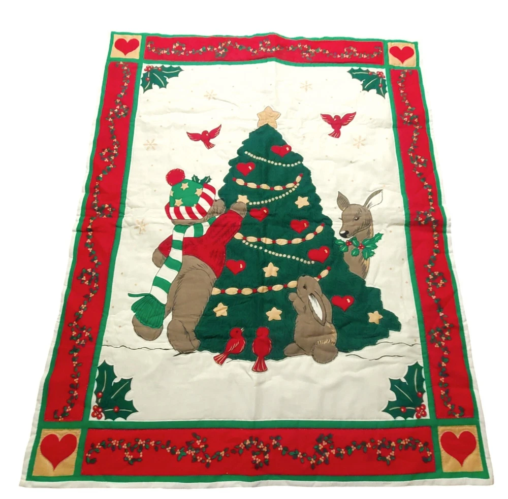 Christmas Tree Wall Hanging Cardinal Bear Deer Complete Quilted Panel Lap Throw