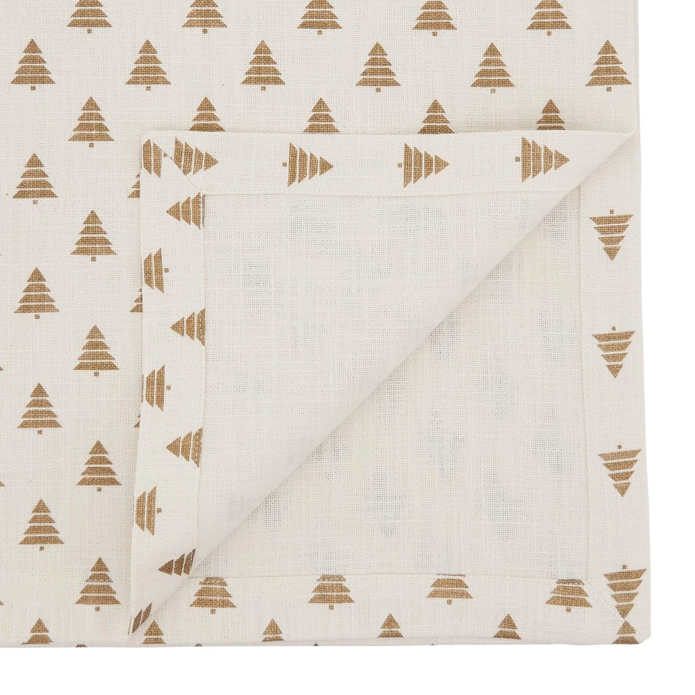 The Christmas Trees Design Table Runner helps set the perfect dining table for your family, friends or guests during the holiday season. It brings Christmas cheer to the table, while adding a touch of elegance to the décor. Pair with the matching napkins for a coordinated look. Size: 14" x 72" Design is not reversible Runner has no lining Cotton is soft and durable for daily use and regular laundering Material: 100% cotton + Care: cool machine wash, lay flat to dry