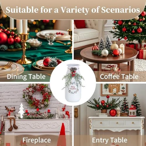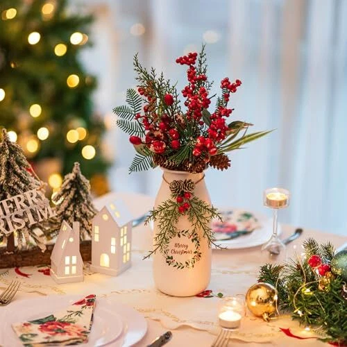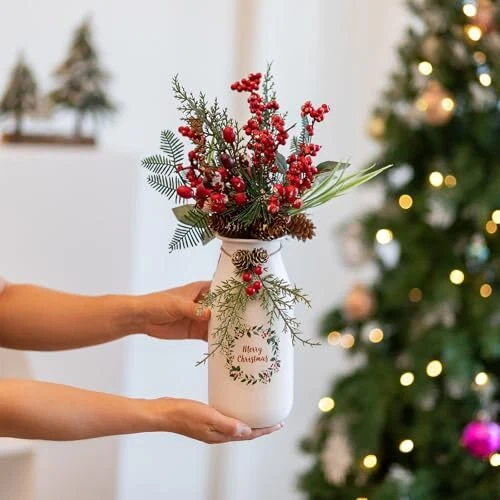 Christmas Vase for Table Centerpieces: 9in White Xmas Decoration Flower Vase