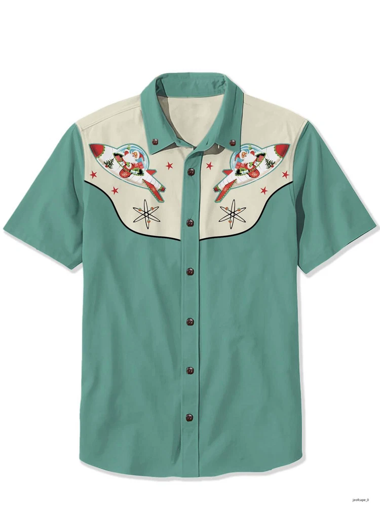Christmas Vintage Atomic Rocket And Santa Hawaiian Shirt Cyan Color S-5XL
