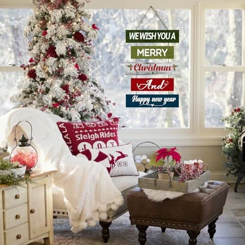 Christmas Wall Decor Hanging Sign Wooden Wall Decor Plaque Christmas Color