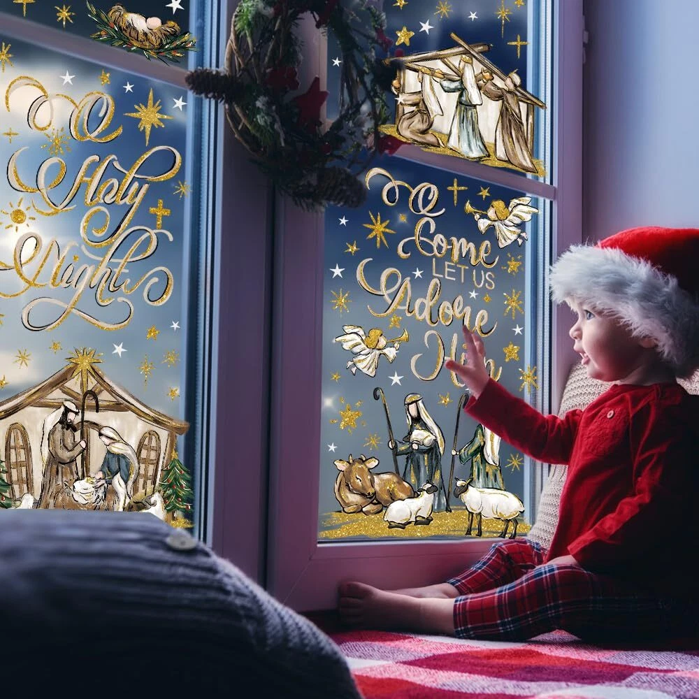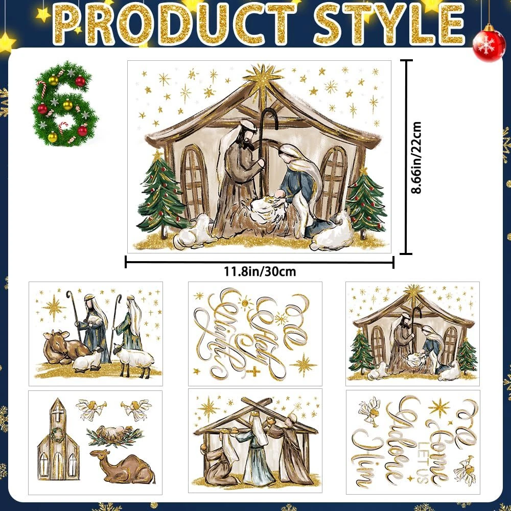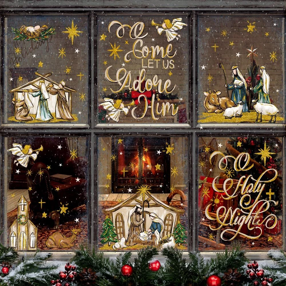 Christmas Window Clings 6 Sheets Jesus Nativity Window Stickers Decals Double...