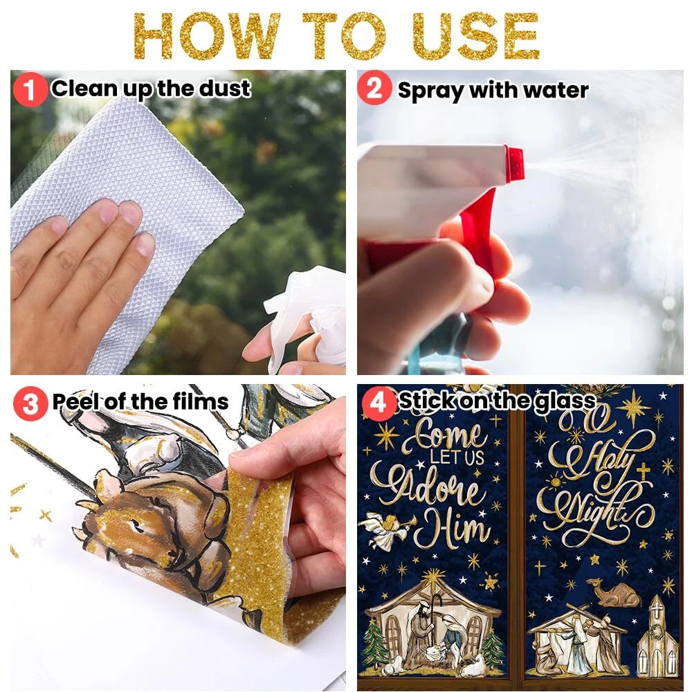 Christmas Window Clings Package Included-- You will get 6 sheets Christmas window clings, designed with vivid Jesus themed patterns, such as church, angles, sheep, cow,stars, Christmas trees, holly berries, words "O holy night", words "O come let us adore him" and more, Easily adding holy atmosphere for your Christmas home. Christmas Design-- Jesus window clings are double-sided that you can see them both indoors and outdoors. Suitable for any smooth surface, such as windows, glass doors and mirrors, refrigerator and more. Premium Material-- Christmas window stickers are made of quality friendly materials and reusable, easy to stick and peel off without leaving a trace on the windows. Easy to Use-- No need for adhesives or glues, just clean the surface of the pasted object and spray a little water before pasting, tear off the pattern and install it on smooth surface then gentle press. It sticks very firmly and won't fall off easily. Perfect Christmas Decor-- Enjoy the fun of decorate a great christmas with families. Jesus window stickers are perfect for decorating home/office/store windows. Great for new year, holiday, party décor and it’s also an ideal Christmas present for families and friends.