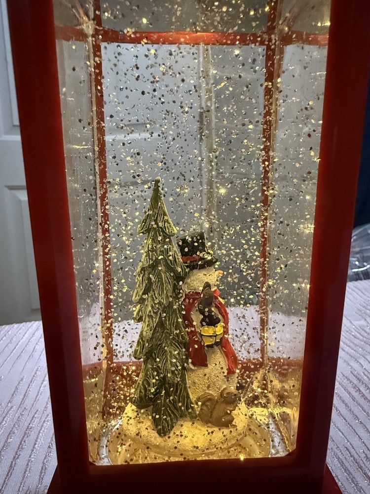 This Christmas snow globe lantern features a charming snowman inside a red lantern frame, creating a festive atmosphere in any room. The lantern is free-standing and requires no additional parts for use, making it easy to place in any space. Powered by AA batteries, the LED lighting technology and musical features add an extra touch of magic to your holiday decor. Easy to clean with a damp cloth, this snow globe lantern is a delightful addition to your Christmas celebrations.