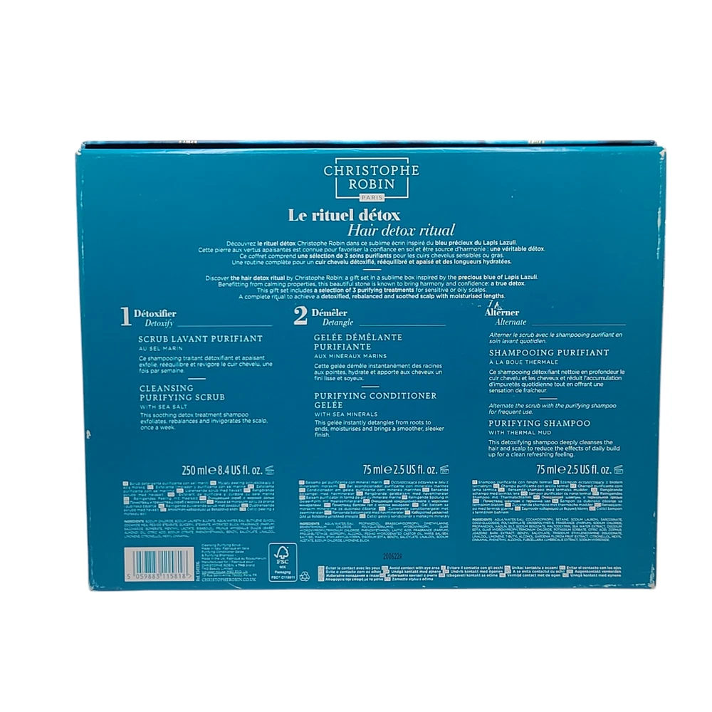 KleverKosmetics Our eBay Store About Us Contact Us Add to Favorite Sellers Christophe Robin Detox Ritual Kit *New* Discover the detox ritual by Christophe Robin ideal for her and for him: a selection of 3 purifying treatments, for sensitive or oily scalps and dry ends. A complete ritual to achieve a rebalanced, detoxified and soothed scalp and moisturised lengths. Ideal for sensitive or oily scalps and dry lengths. Set Contents: Cleansing Purifying Scrub with Sea Salt 250ml A soothing detox treatment shampoo that exfoliates, rebalances and invigorates the scalp for beautifully shiny hair. Alternate the scrub with the purifying shampoo for frequent use Purifying Conditioner Gelée with Sea Minerals 75ml A lightweight but powerful conditioner that instantly detangles from roots to tips, moisturises and brings a smoother, sleeker finish. Purifying Shampoo with Thermal Mud 75ml This detoxifying shampoo deeply cleanses the hair and scalp to reduce the effects of daily build up for a clean refreshing feeling. Discover the detox ritual by Christophe Robin ideal for her and for him a selection of 3 purifying treatments, for sensitive or oily scalps and dry ends A complete ritual to achieve a rebalanced, detoxified and soothed scalp and moisturised lengths. Ideal for sensitive or oily scalps and dry lengths. Set Contents: Cleansing Purifying Scrub with Sea Salt 250ml A soothing detox treatment shampoo that exfoliates, rebalances and invigorates the scalp for beautifully shiny hair. Return and Refund Information • Please be aware that colors on the screen may appear slightly different in person. • Please be familiar with product. Feel free to contact us if you have any questions. • DUE TO HEALTH AND SANITARY ISSUES CONCERNING COSMETICS OR SKINCARE WE DO NOT ACCEPT RETURNS ON THESE ITEMS. ALL SALES ARE FINAL. • WE WILL ONLY ACCEPT RETURNS WHEN THE ERROR IS ON OUR END. • Attention VeRO members: We're not affiliated with or endorsed by the companies mentioned in this listing. All trademarks and copyrights are acknowledged, they are only used for informative description of the items offered for sale. Warranty information We are not an authorized dealer of this product and any warranty included with the product may not be honored by the manufacturer.
